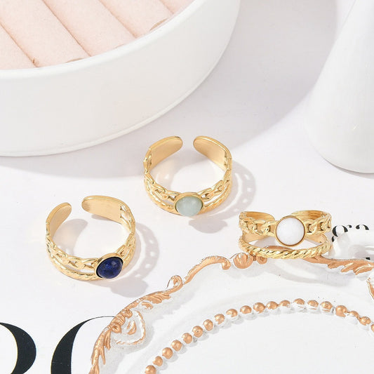 Bague deux rangs épaisse pierre naturelle