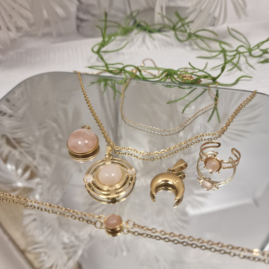 Parure Stella - Quartz rose - amour de soiPrix habituel 89,00€ EURPrix habituelPrix unitaire / par162,00€ EURPrix promotionnel 89,00€ EUREn vente