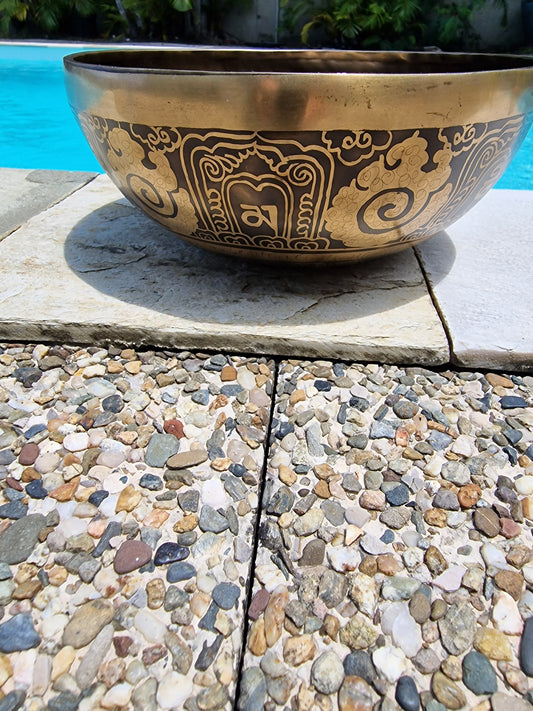 Bol Chantant Tibétain - Cho-pa Gravé avec symbole sacrée 30cm