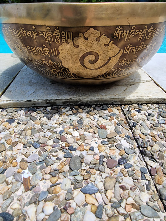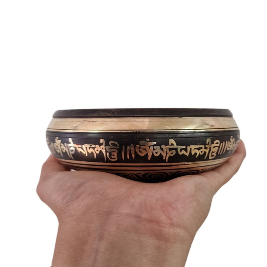 Bol Chantant Tibétain - Cho-pa Gravé avec symbole sacrée 26 cm