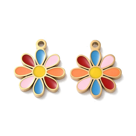 Charm émaillé - Fleur pétale multicolore
