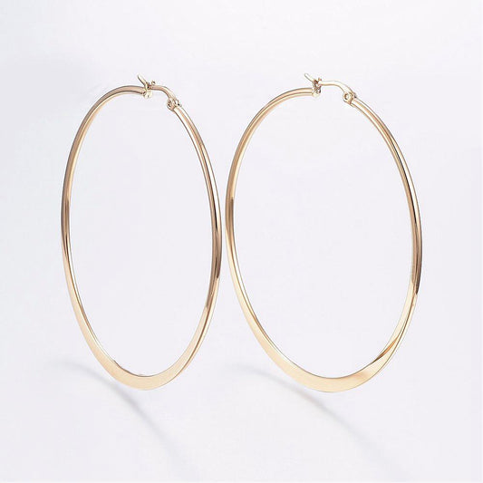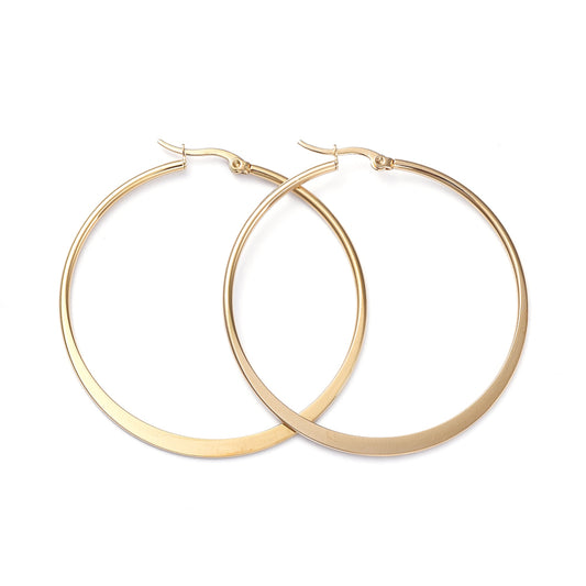 Créole ronde aplatie classique acier inoxydable 78mm or