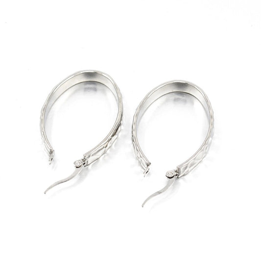 Créole ovale large avec motif en acier inoxydable argent 3,8cm