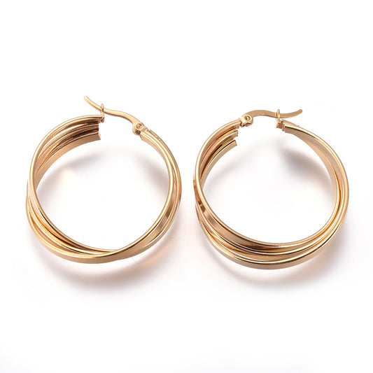 Créole 3 couleurs en acier inoxydable 20x3mm, pin: 0.8x1 mm