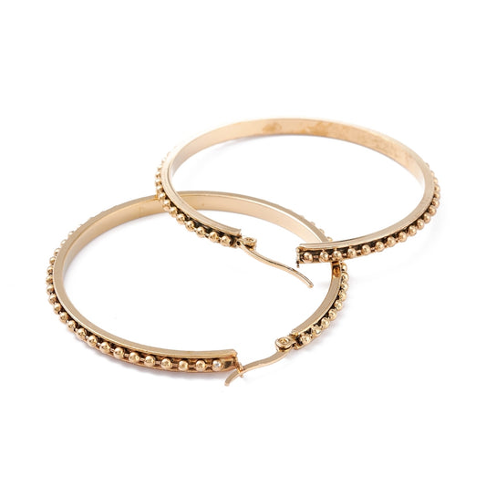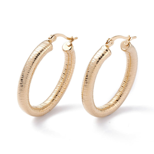 Créole large avec effet paillette en acier inoxydable or 7x7x1.3mm, pin: 0.8 mm