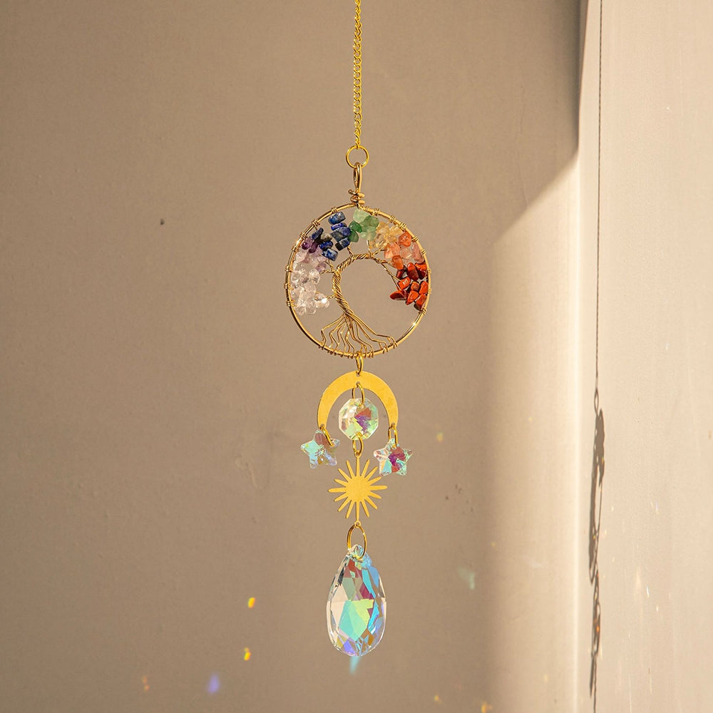 Apportez la paix et la positivité dans votre espace avec notre attrape-soleil suspendu Arbre de vie. Les pendentifs en pierres précieuses naturelles créent un jeu de lumière fascinant tout en purifiant l'énergie grâce à l'améthyste, au lapis-lazuli et plus encore. Mesurant 380 mm de long, c'est le cadeau parfait pour vous ou un être cher.