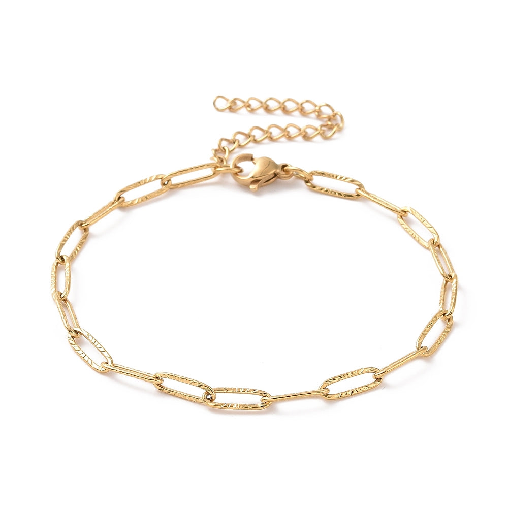 Bracelet chaîne trombone en acier inoxydable 304 plaqué sous vide PVD pour hommes et femmes,or