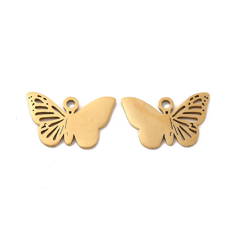 En acier inoxydable, breloque papillon, or, 10x16x0.9mm, Trou: 1.4mm