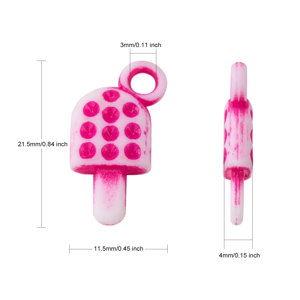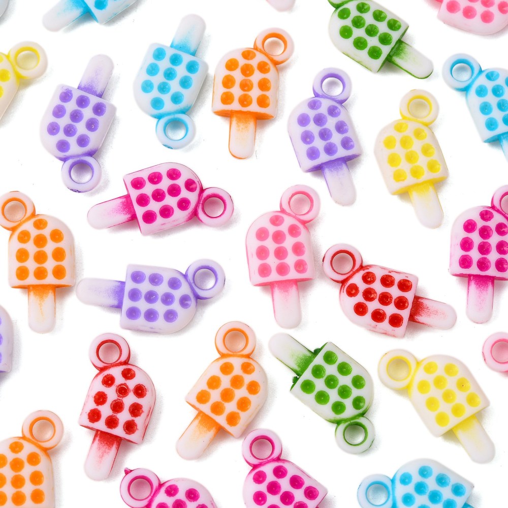 Breloques acryliques opaques batons de crème glacée, couleur mixte, 21.5x11.5x4mm