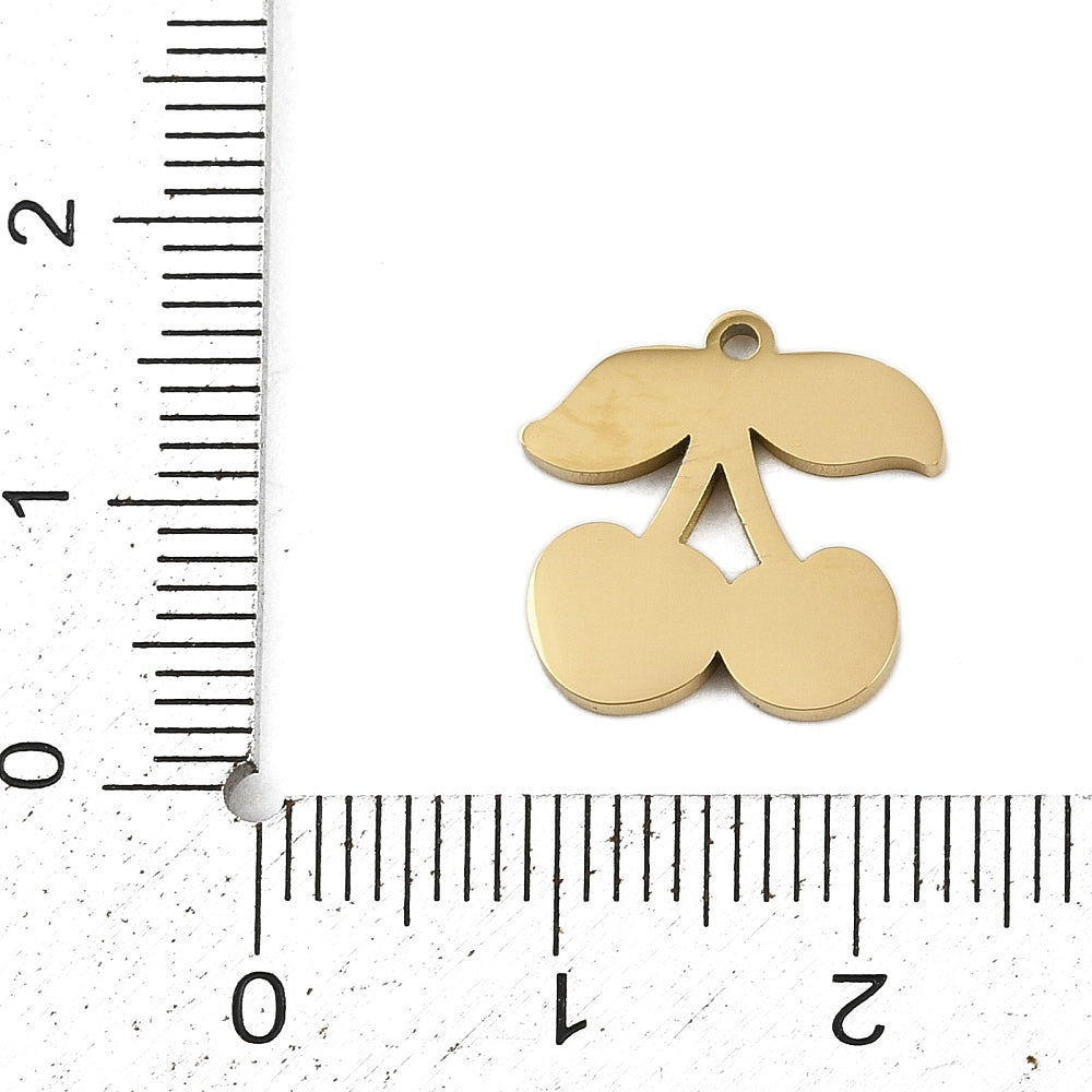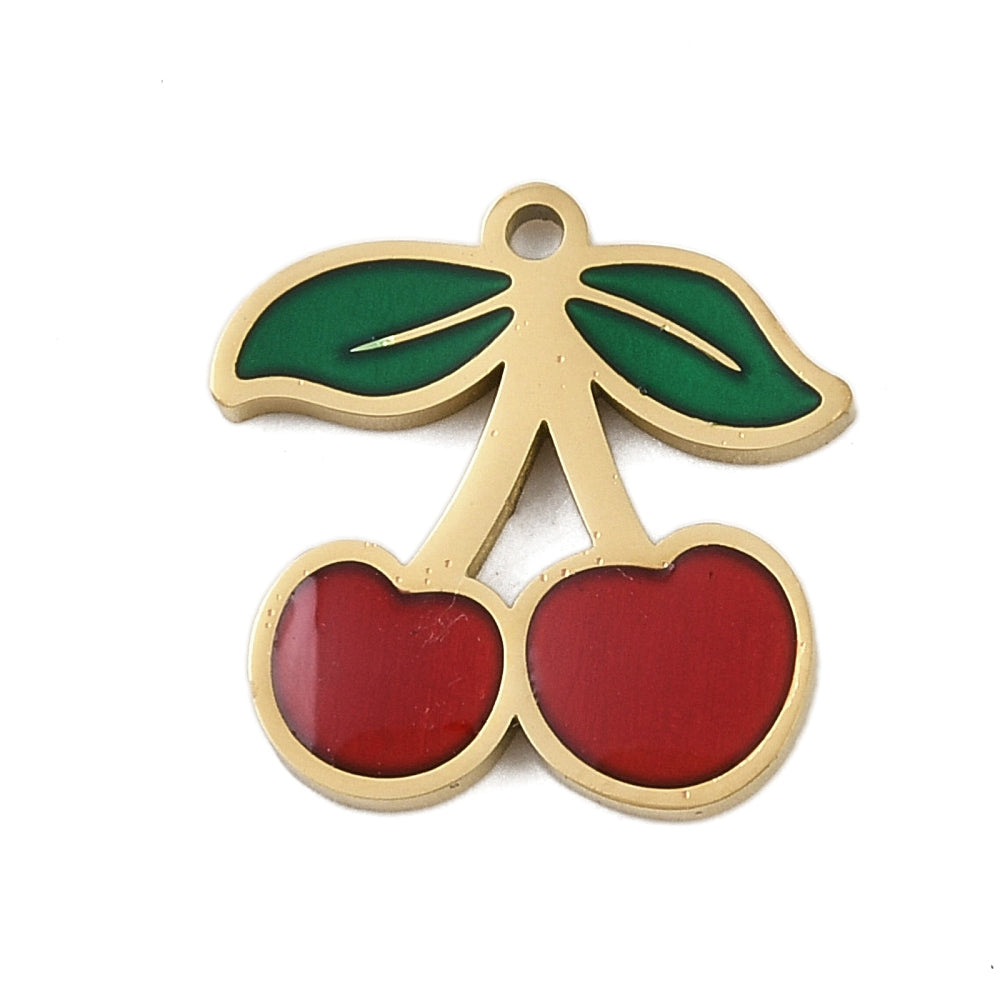 Breloques en émail en acier inoxydable 304, or, cerise, 14.5x14.5x1.5mm