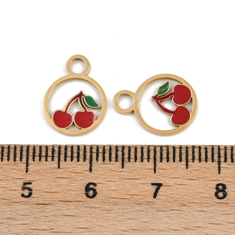 Breloques en émail en acier inoxydable 304 breloque cerise 13.5x10x1mm