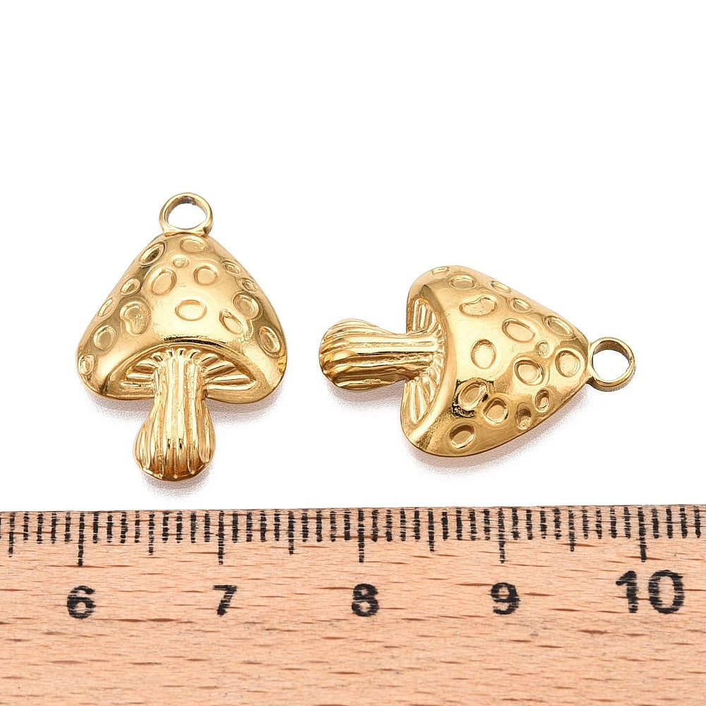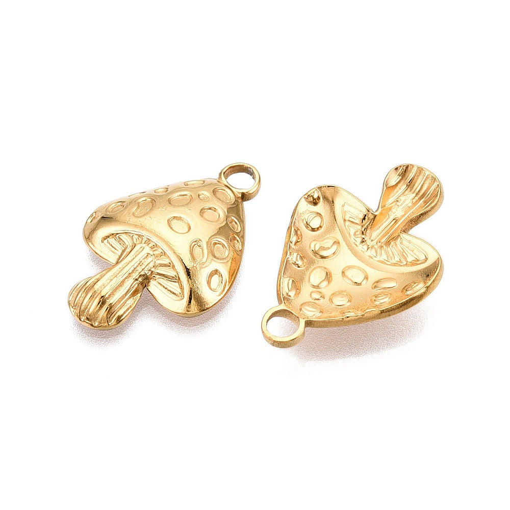 En acier inoxydable 304 avec placage ionique (IP), charme de champignon, véritable 18k plaqué or, 23.5x15.5x4mm, Trou: 1.8mm