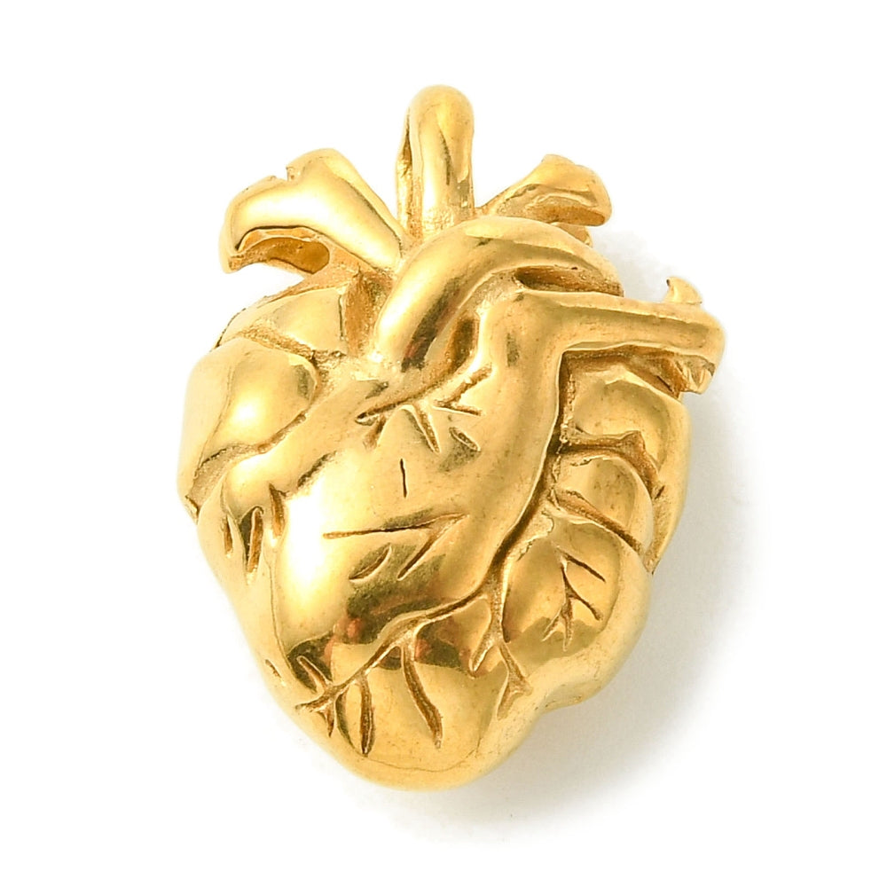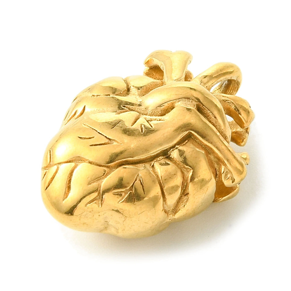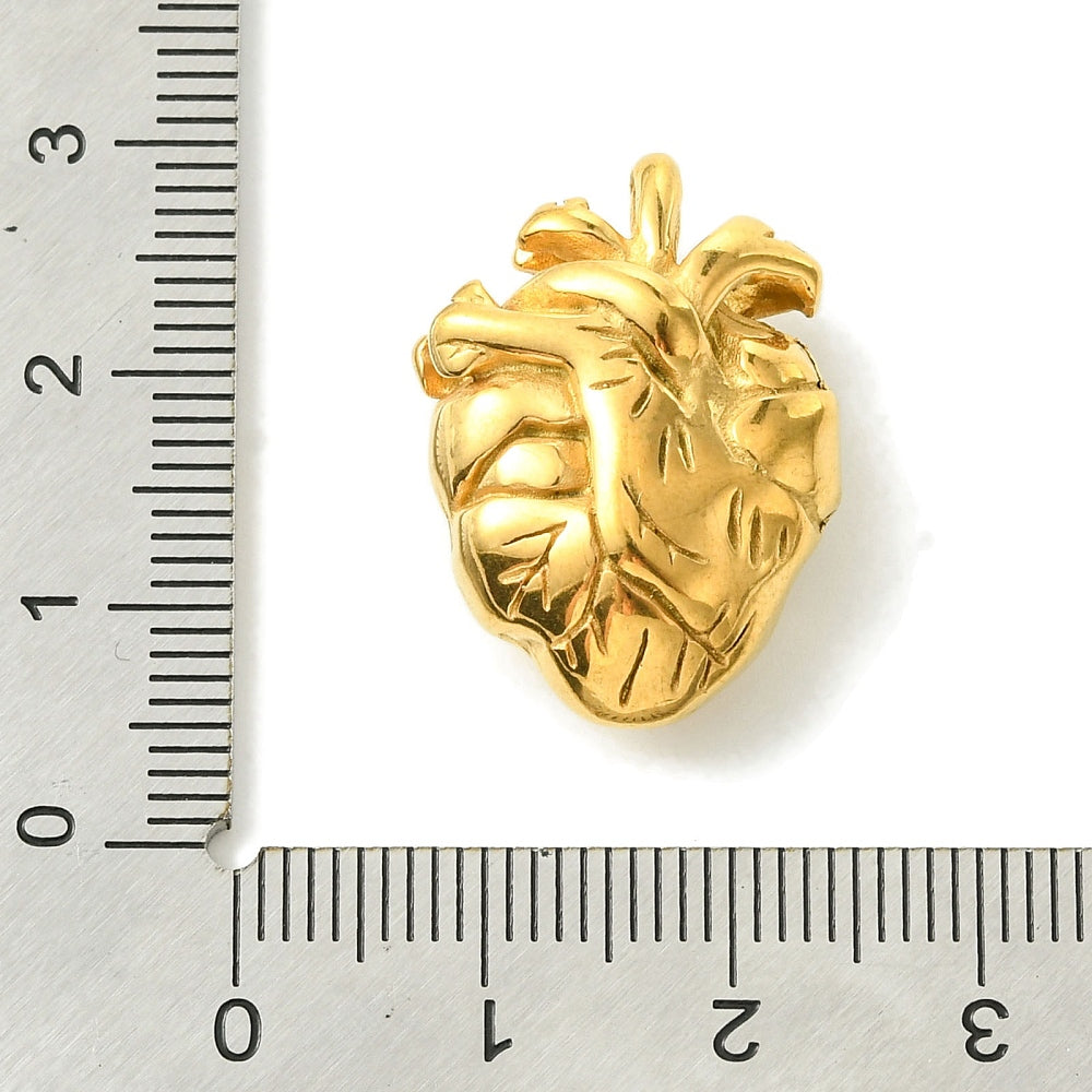 En acier inoxydable 304 avec placage sous vide PVD, breloque coeur, or, 24x18x10.5mm, Trou: 3.5mm