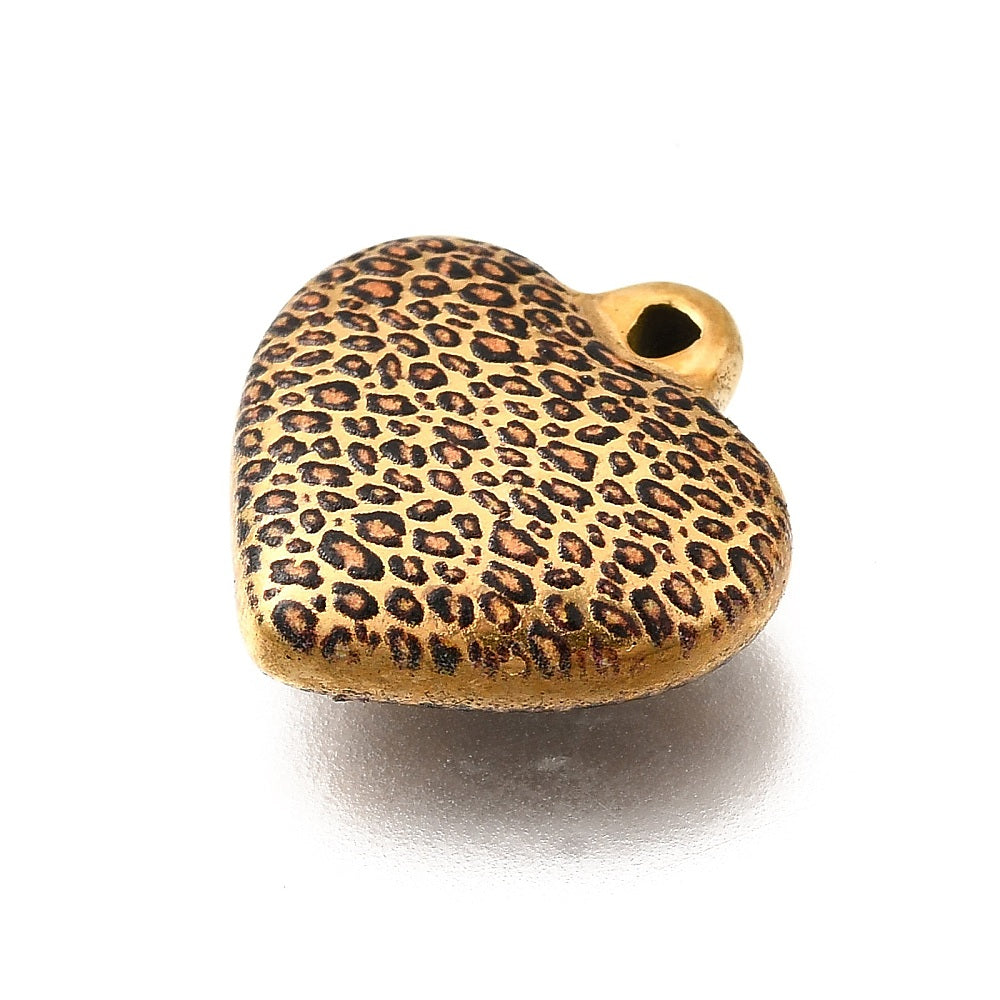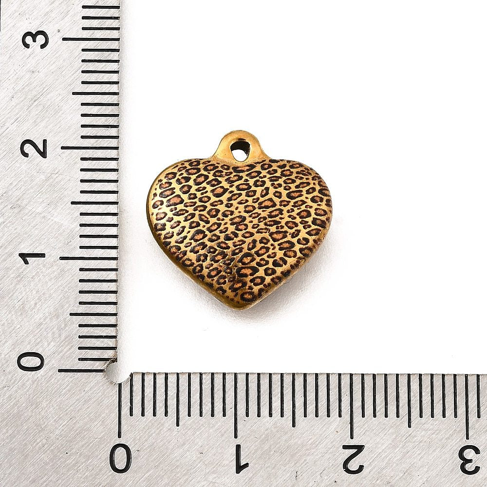 Pendentifs imprimés en acier inoxydable 304, placage ionique (ip), breloque coeur avec motif léopard, or, 16x16.5x5mm