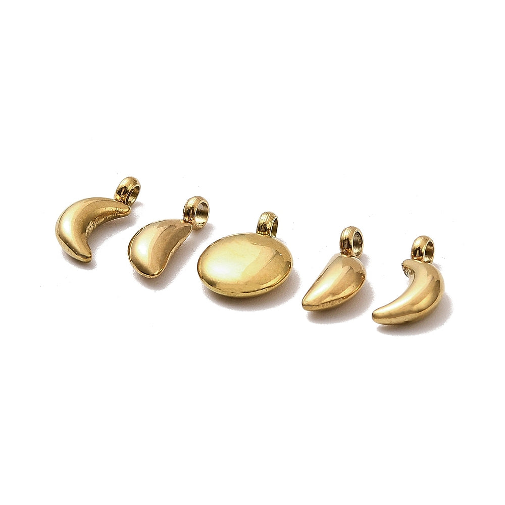 5 breloques en acier inoxydable 304, placage ionique (ip), breloque ronde plate et lune, or, 10.5x4~8x2.5~3mm