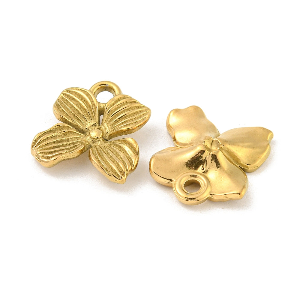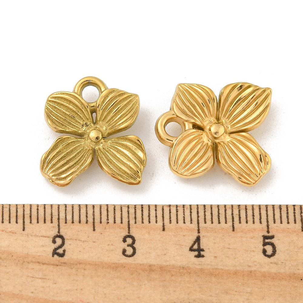En acier inoxydable 304 avec placage ionique (IP), breloque de fleur, véritable 18k plaqué or, 17x16x4mm, Trou: 2.1mm