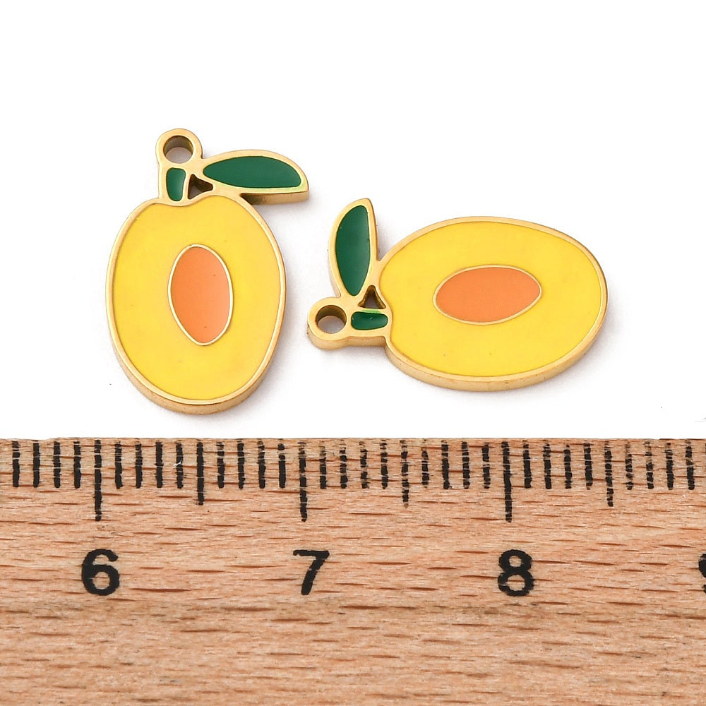 Breloques en émail en acier inoxydable 304 de la série Fruit, placage ionique (ip), or, environ 14.5x12x1.5mm