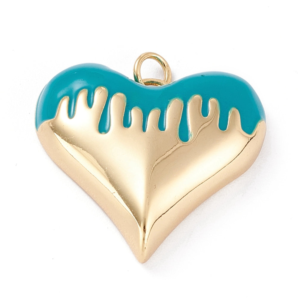 Pendentifs d'émail en laiton , véritable 18k plaqué or, Plaqué longue durée, cœur, couleur mixte, 25.5x27x7mm, Trou: 3.4mm