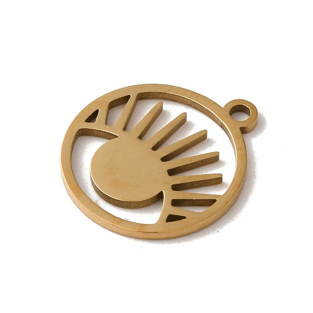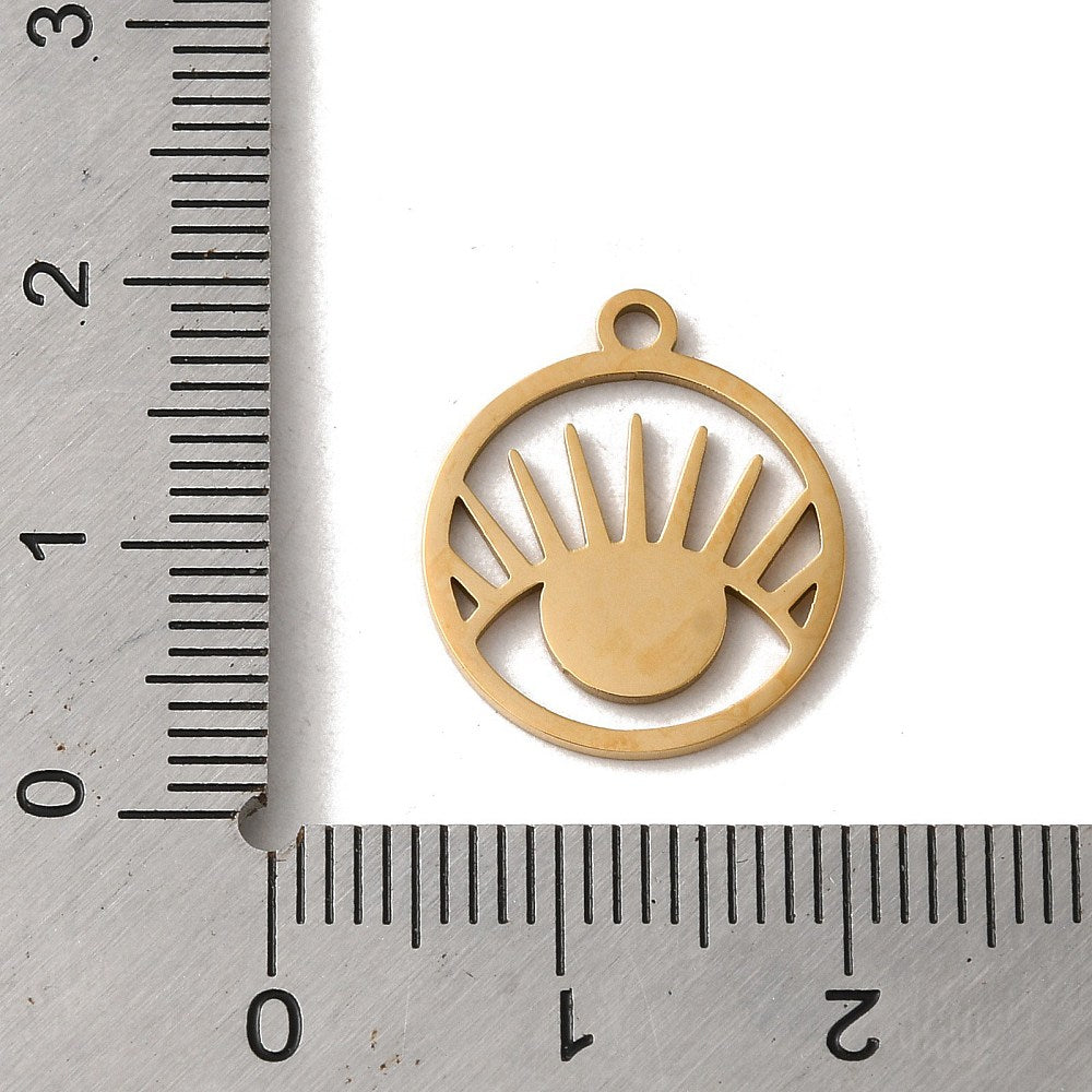 En acier inoxydable, Coupe au laser, plat rond avec breloque oeil, or, 17x15x1mm, Trou: 1.6mm