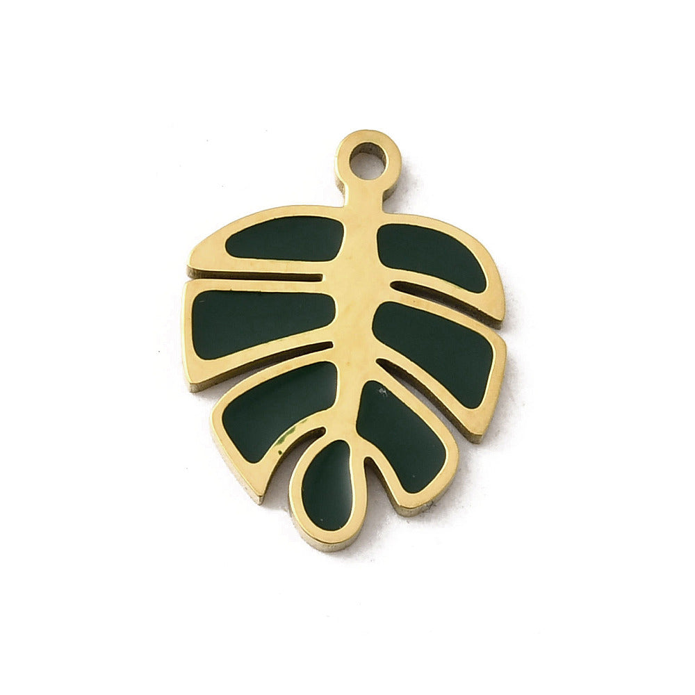 Breloques en émail en acier inoxydable 304, placage ionique (ip), or, feuille, 15x11.5x1.5mm
