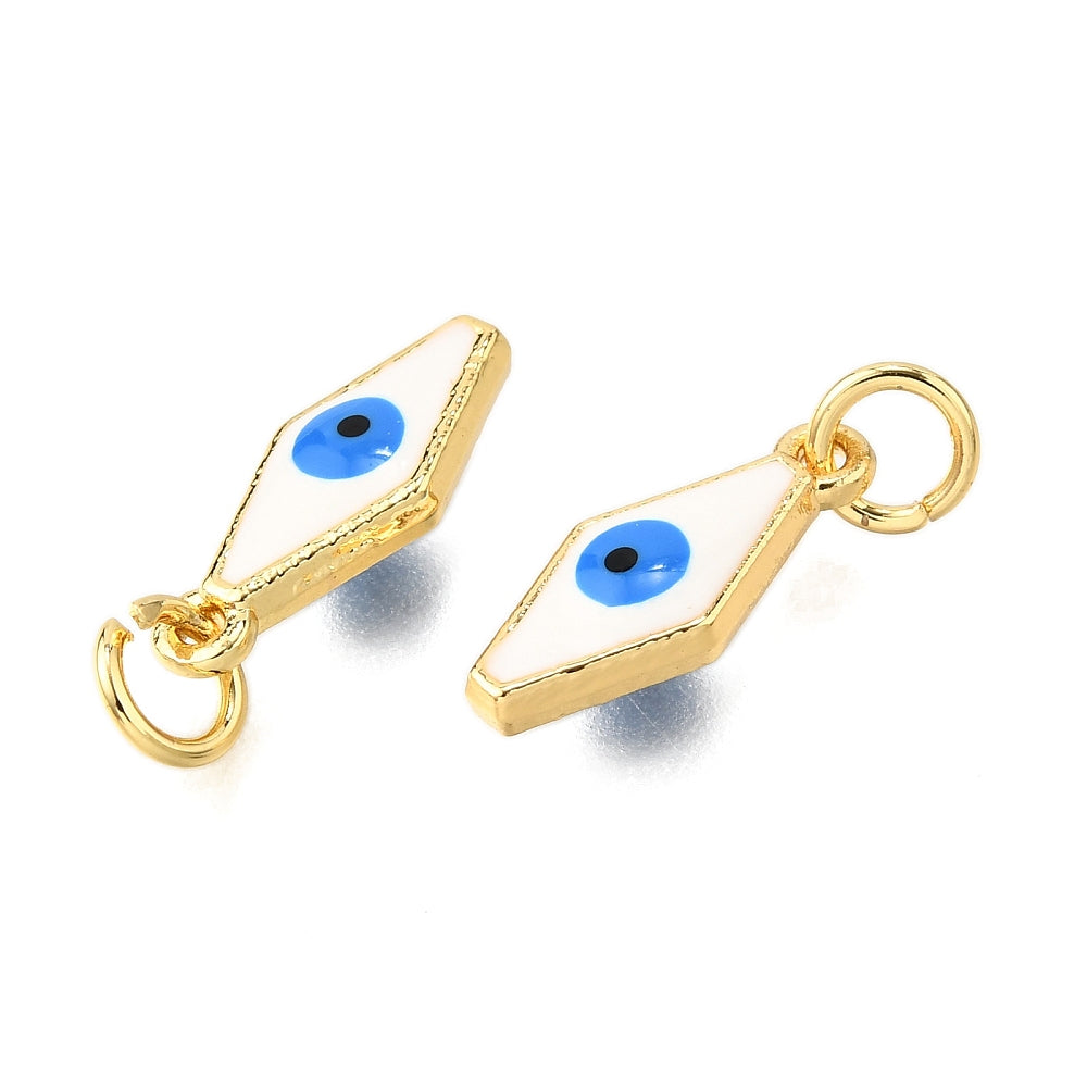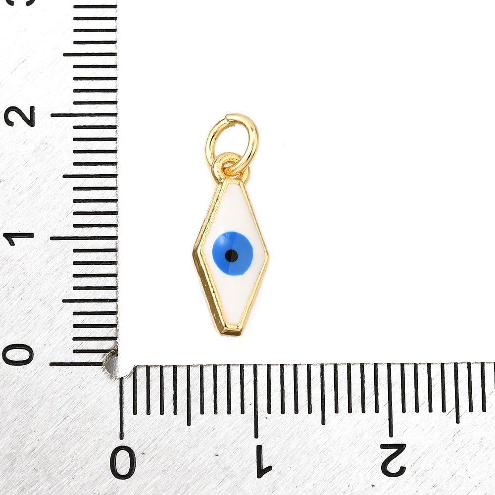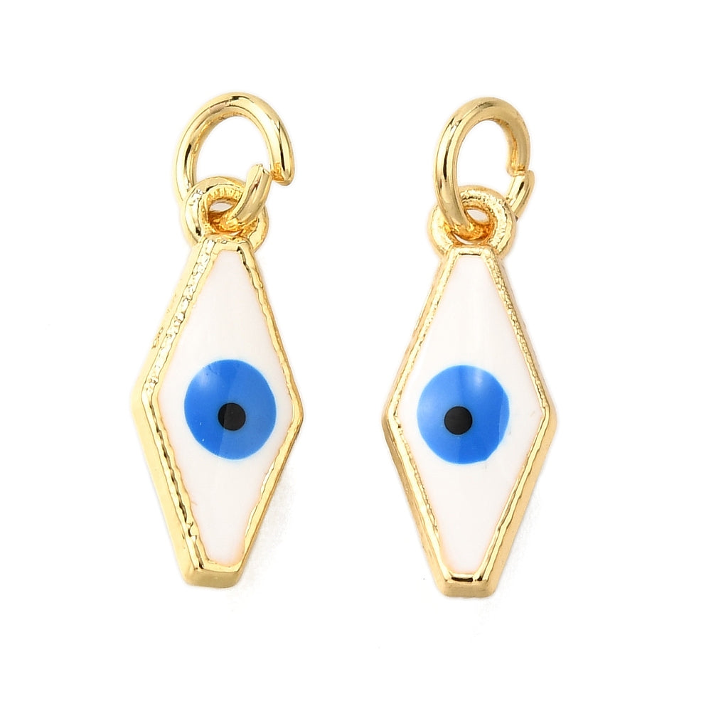 Breloques d'émail en laiton, avec anneau de jonction, losange avec charme mauvais œil, crémaillère plaquage, sans cadmium et sans plomb, Plaqué longue durée, or, couleur mixte, 14.5x6x3mm, Trou: 3mm