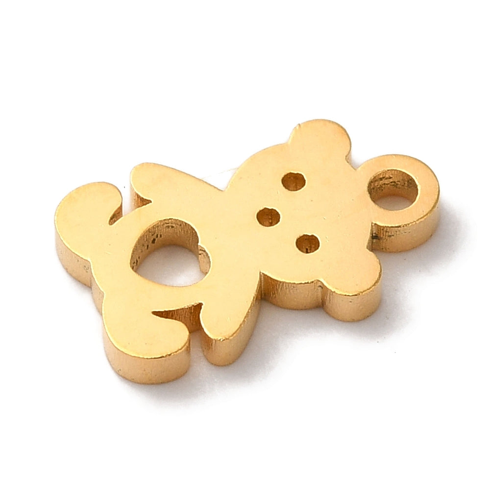 En acier inoxydable 304 plaquées sous vide PVD, Coupe au laser, ours avec des breloques de coeur, or, 9.5x6x1mm, Trou: 1.2mm
