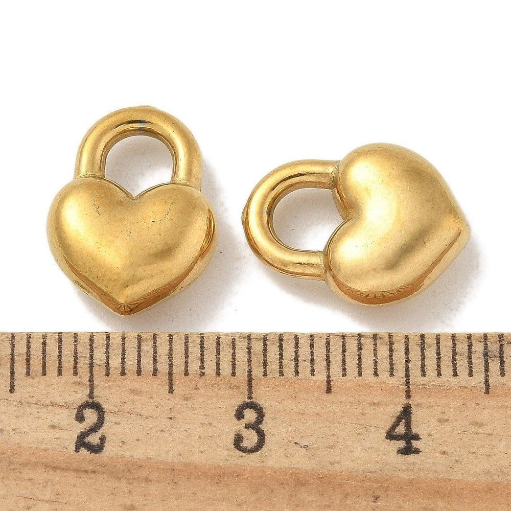 En acier inoxydable 304 plaquées par ions (IP), charme de cadenas de coeur, véritable 18k plaqué or, 15x11x5mm, Trou: 4x4mm