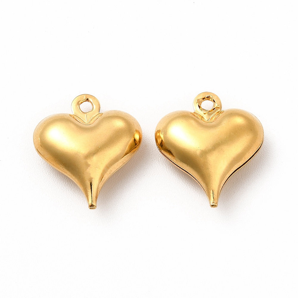 En acier inoxydable 304, breloque cœur soufflé, or, 15.8x13.5x5.8mm, Trou: 1mm
