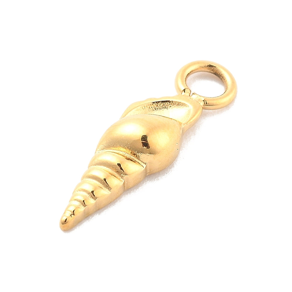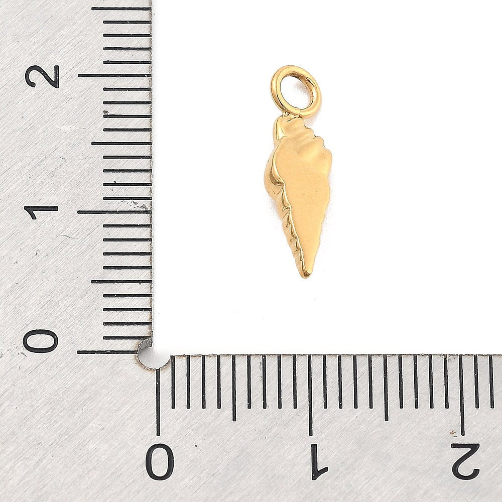 En acier inoxydable 304 avec placage ionique (IP), forme coquille, véritable 14k plaqué or, 16.5x4.5x3mm, Trou: 2.5mm
