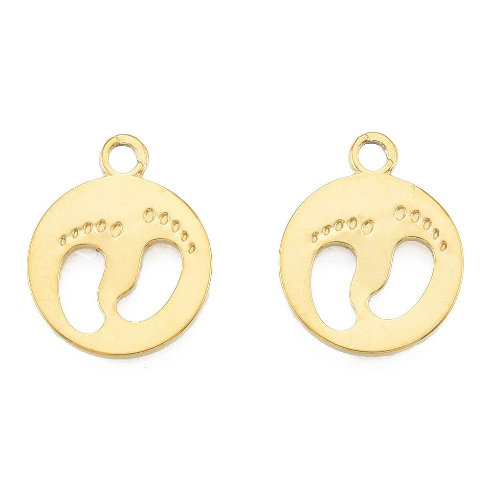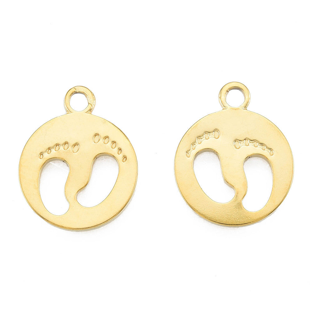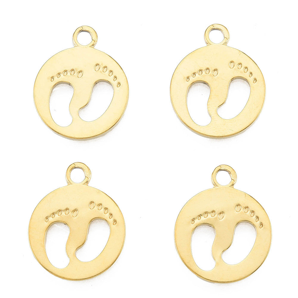 En acier inoxydable avec placage ionique (IP) 201, rond plat avec empreintes, véritable 18k plaqué or, 18.5x15x1.5mm, Trou: 1.8mm
