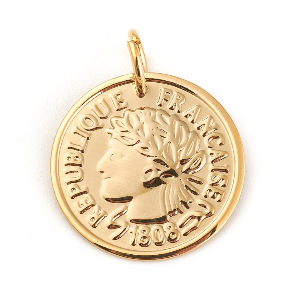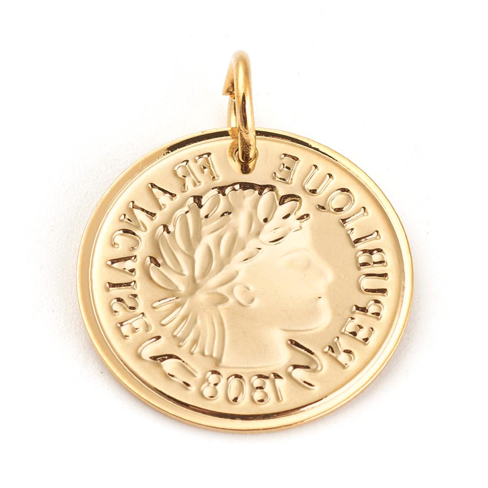 En forme de pièces en acier inoxydable 304, republique francaise 1808, or, 20x1mm, Trou: 5mm