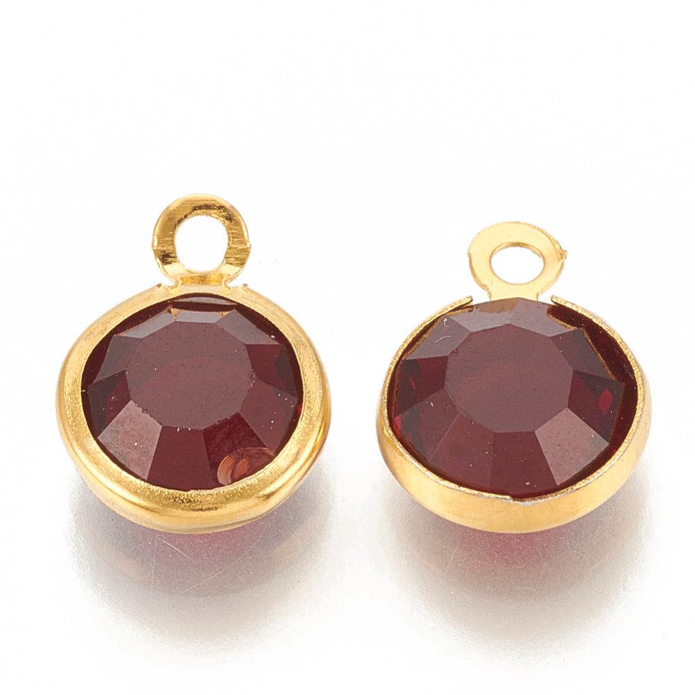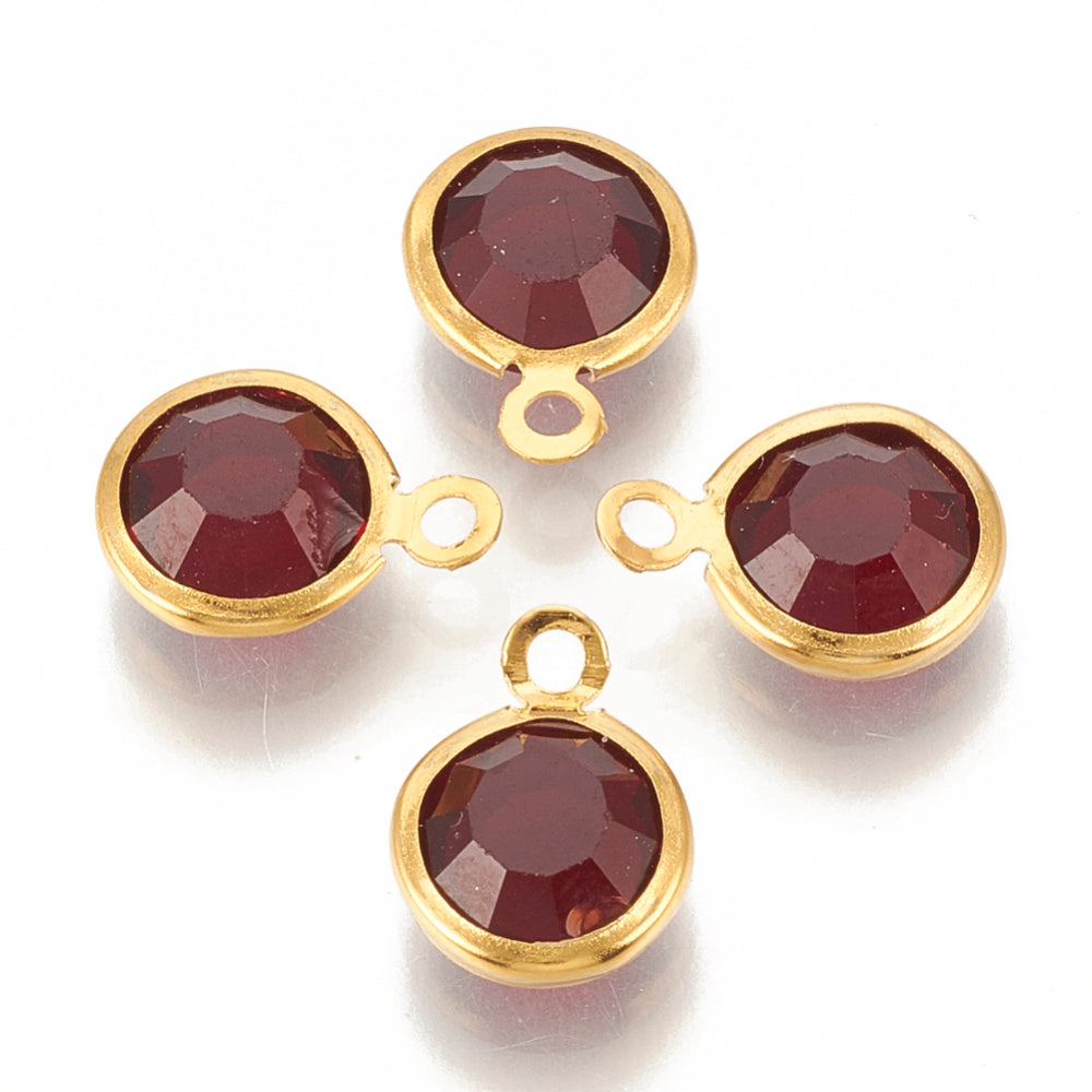 En verre, avec accessoire en 304 acier inoxydable, plat rond, facette, or, couleur mixte, 12x8.5x4mm, Trou: 1.5mm