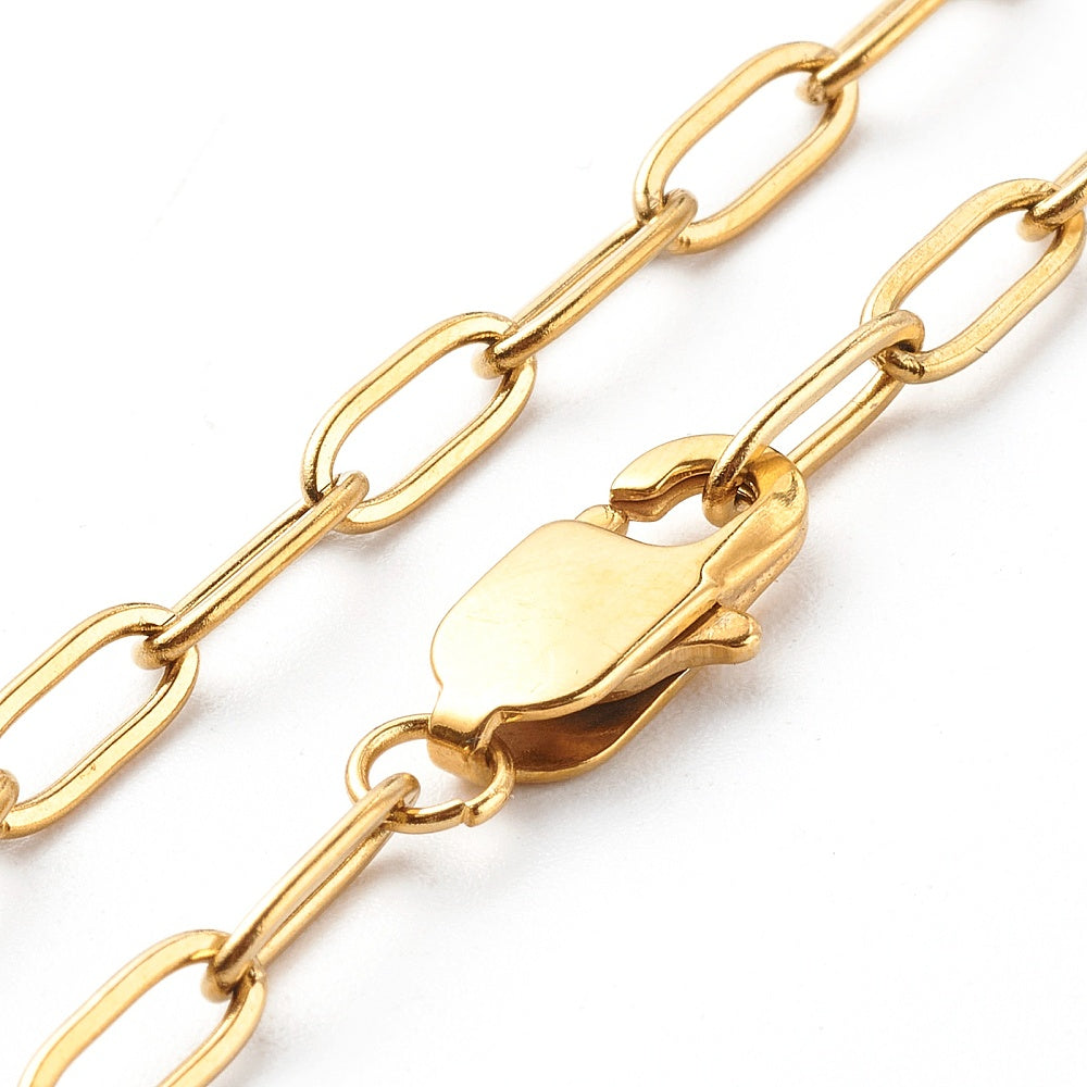 Chaine pour collier à maillons en acier inoxydable 304or pour bijoux charm's breloque a choisir pour un bijou 100% personnalisé, avec fermoir pince de homard