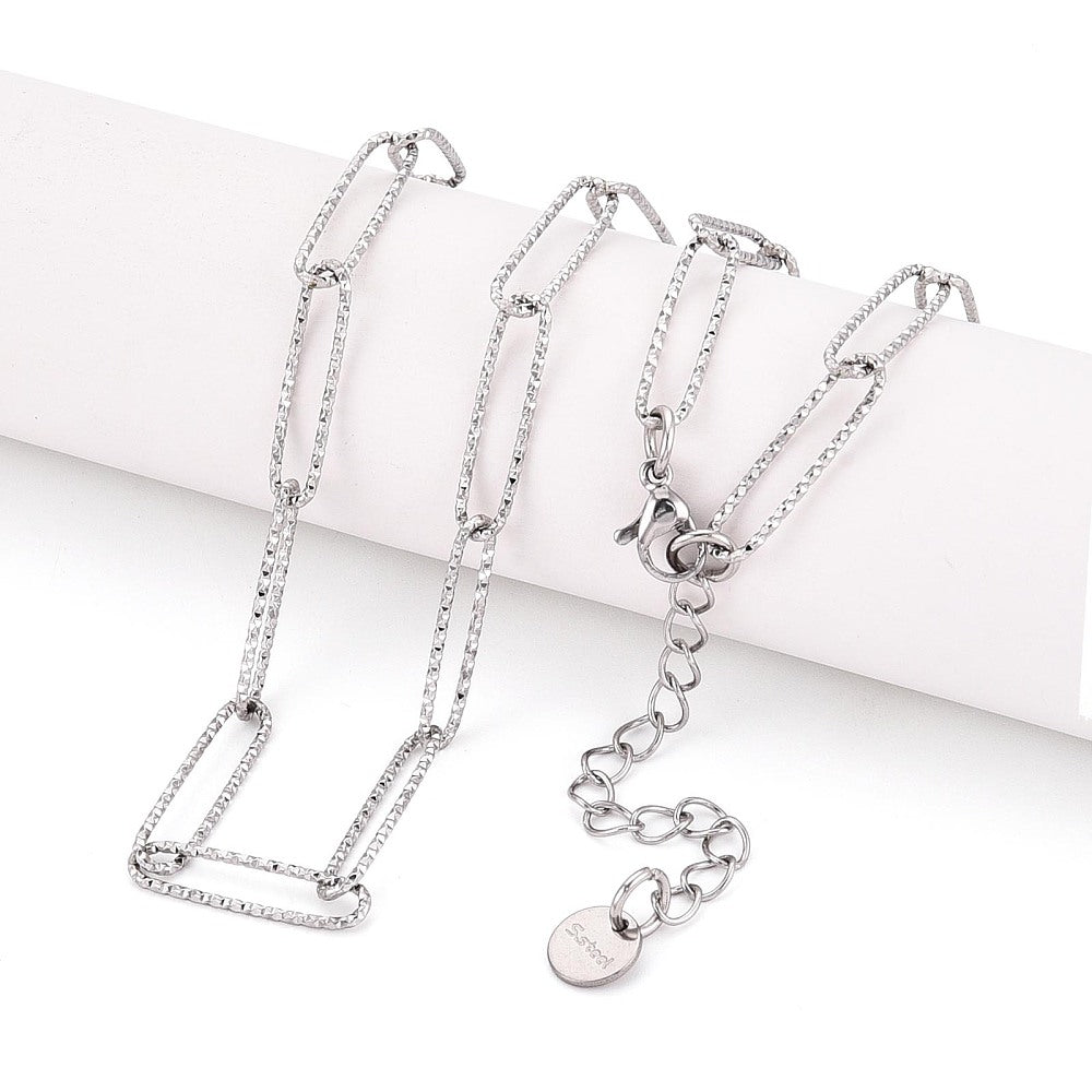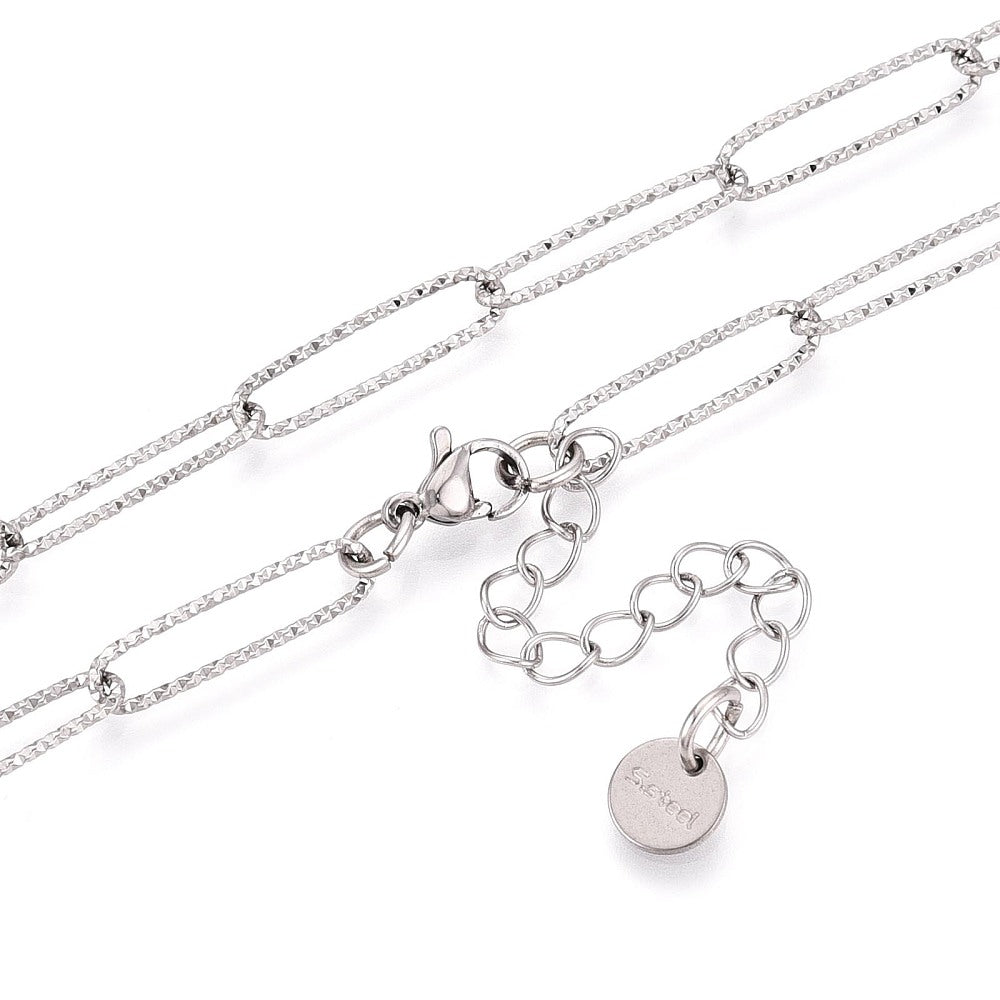 Collier chaîne trombone en acier inoxydable 304 anti-ternissement, couleur inoxydable, 15.75 pouce (40 cm) ~ 15.94 pouces (40.5 cm)