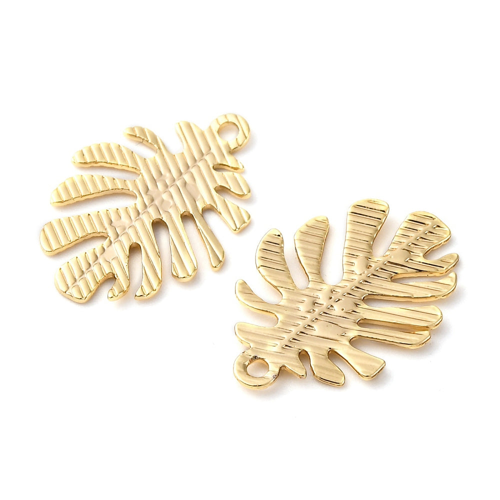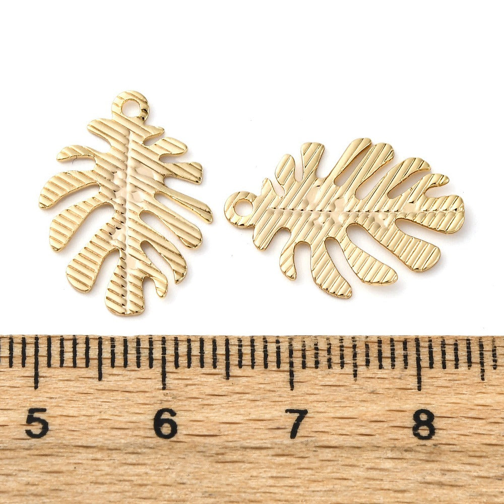Pendentifs en laiton, feuille, véritable 18k plaqué or