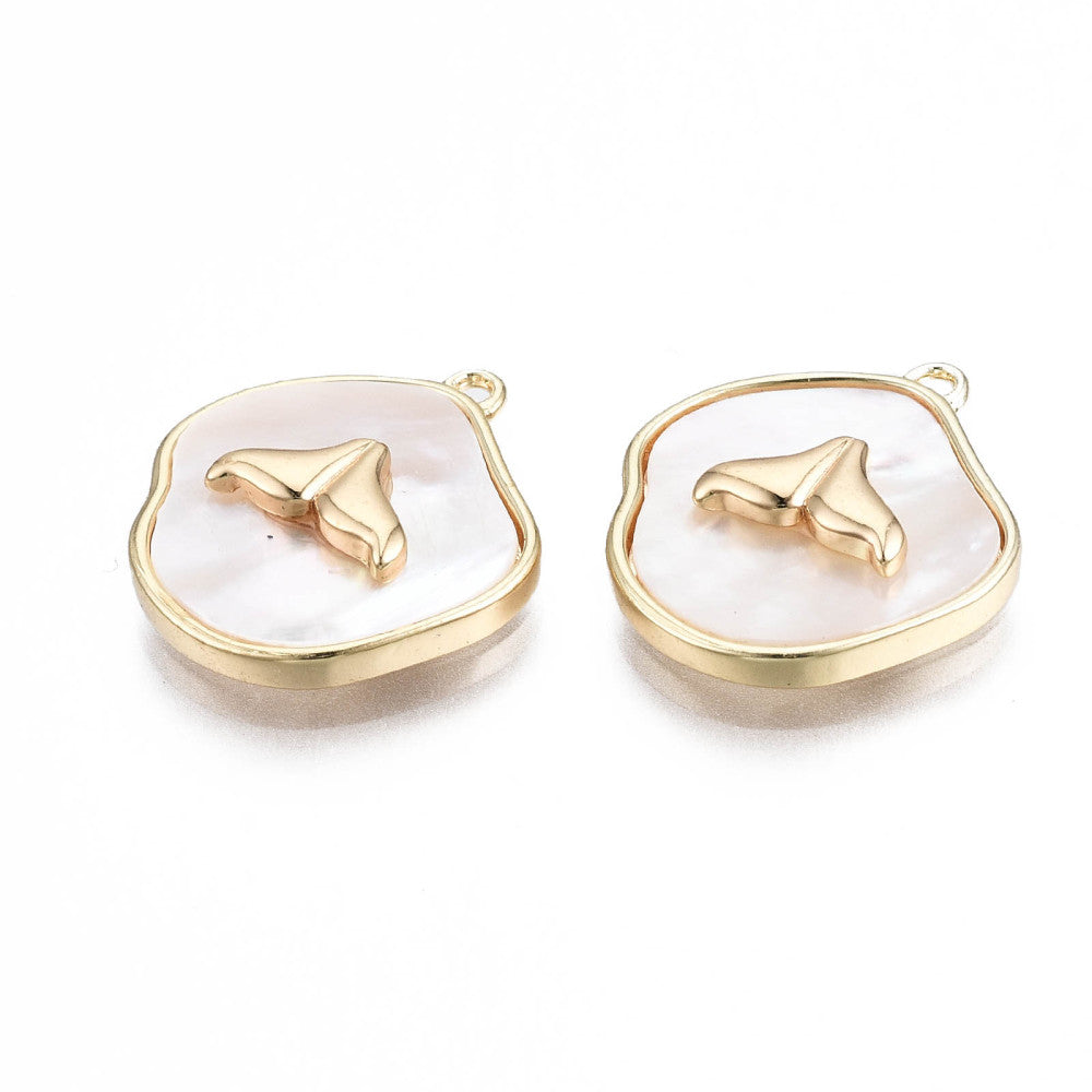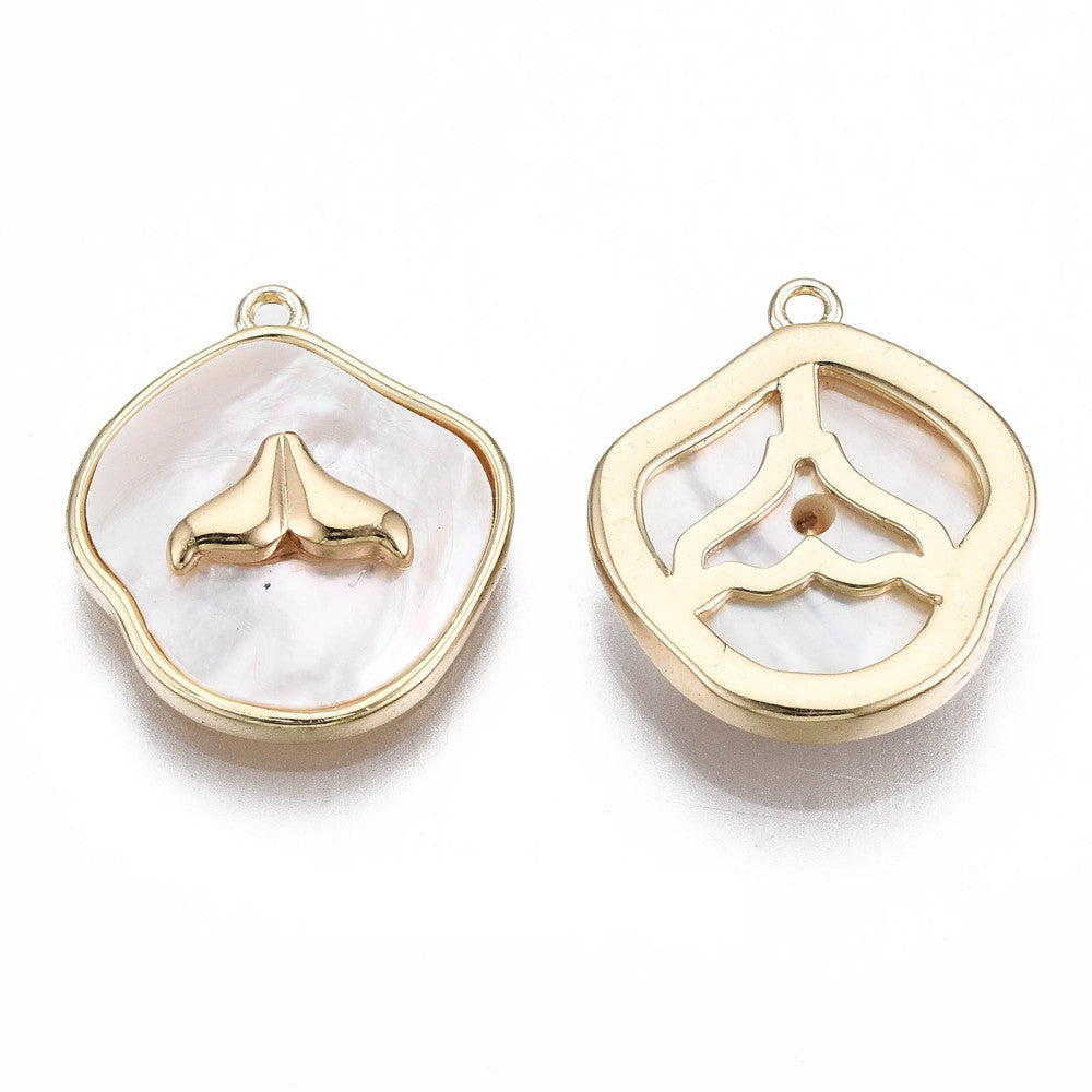 Pendentifs en laiton, avec coquille naturelle, sans nickel, queue de baleine, véritable 18k plaqué or, 16.5x14.5x3mm, Trou: 1.2mm