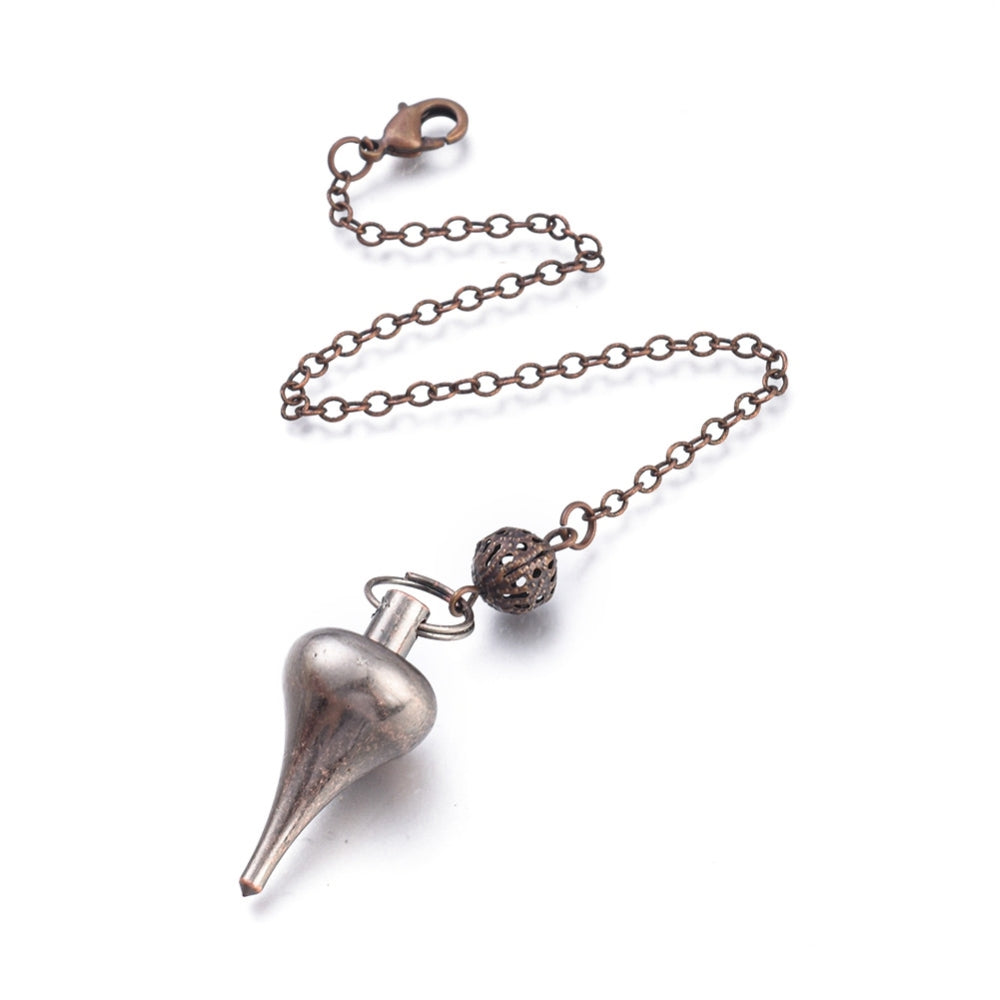 Ce pendule de radiesthésie pointus chaîne câble en laiton, avec alliage homard fermoirs pince, sans cadmium et sans plomb, larme, platine, 220~235mm, Trou: 2mm. Très utile pour rechercher les objects perdus.