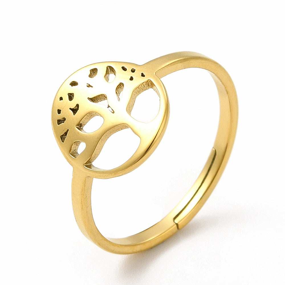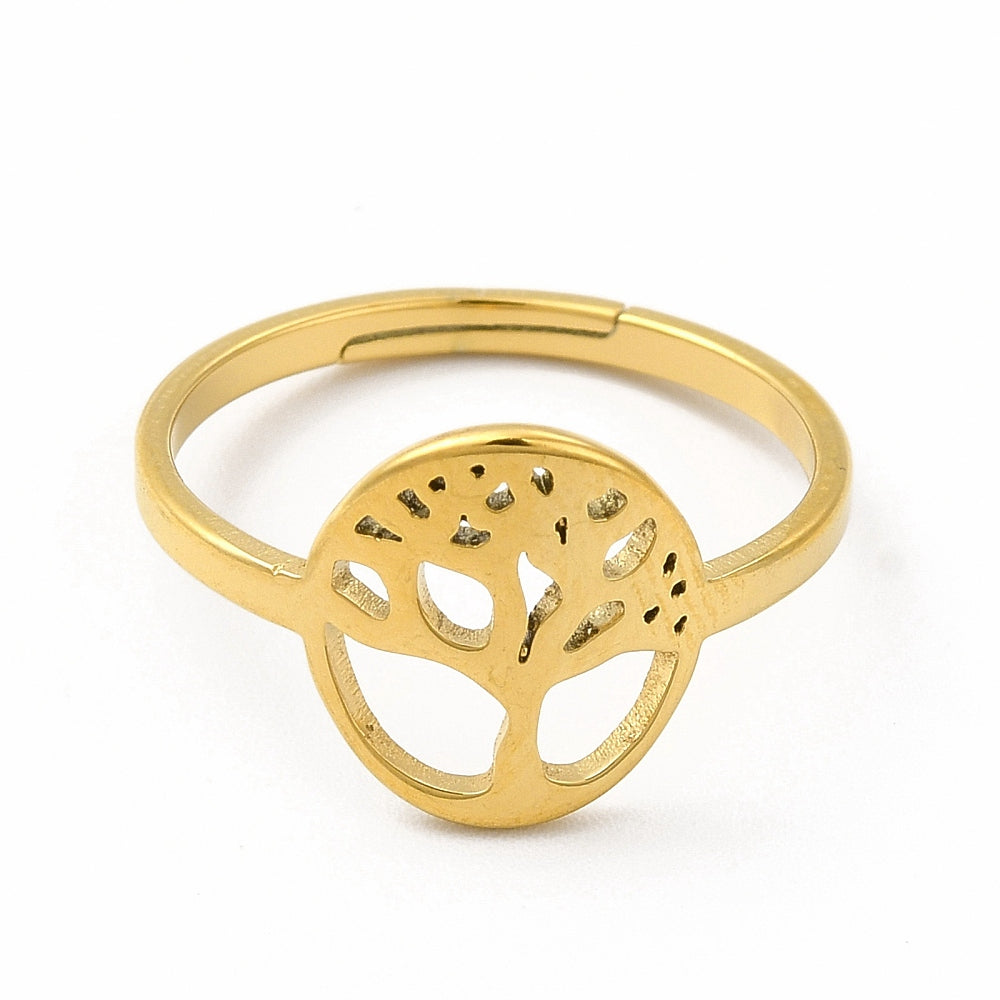 Bague femme en acier inoxydable ou, taille réglable.