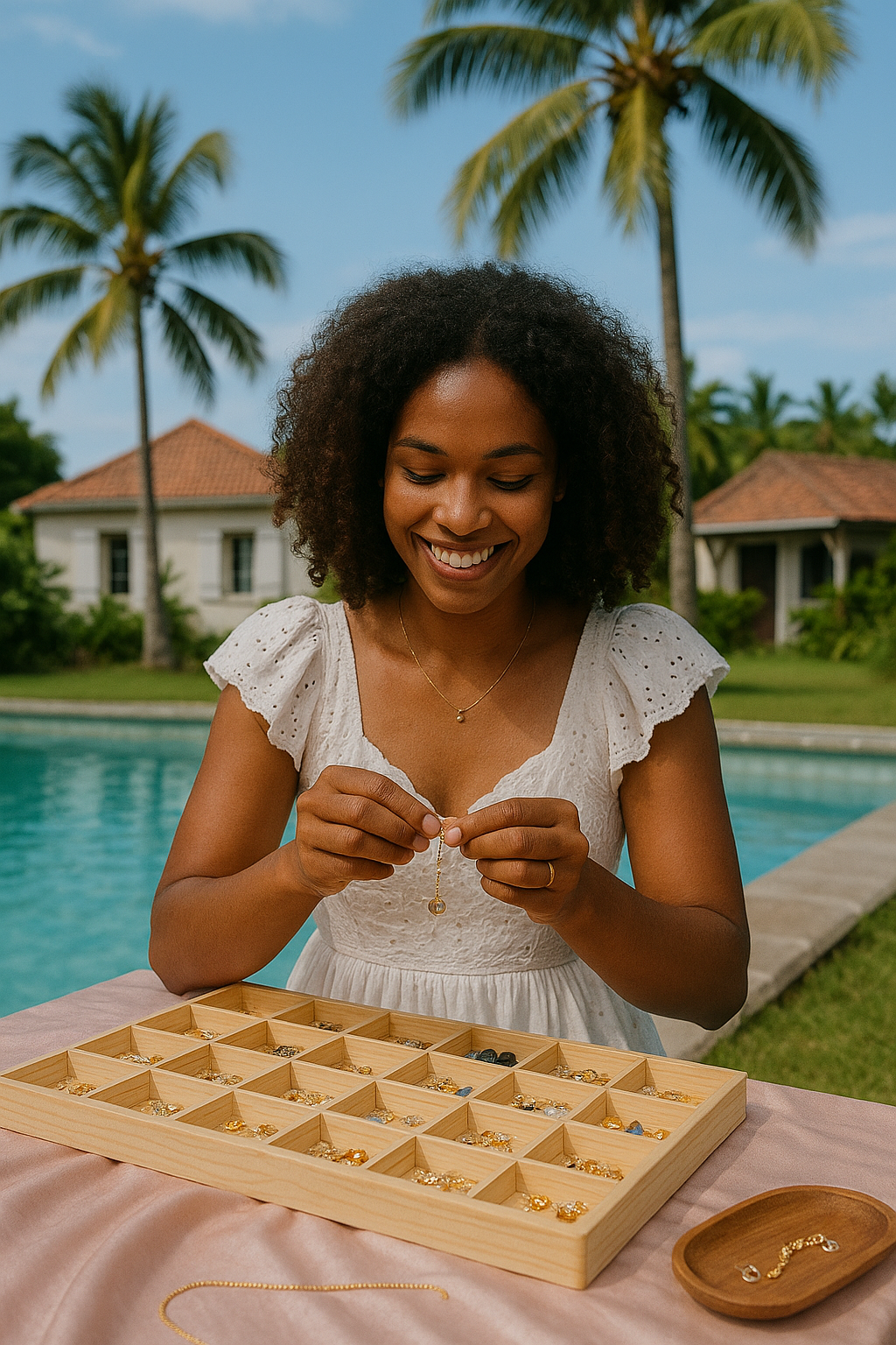 Chaque participante réalise son propre bijou personnalisé, au choix :Un bracelet,Un collier,Ou un bijou de corps (chaîne de ventre, cheville, bijou de dos).Vous pourrez choisir parmi une dizaine de modèles de chaînes et 4 breloques au choix.✨ Il est possible d’ajouter des breloques supplémentaires moyennant un petit supplément par pièce.