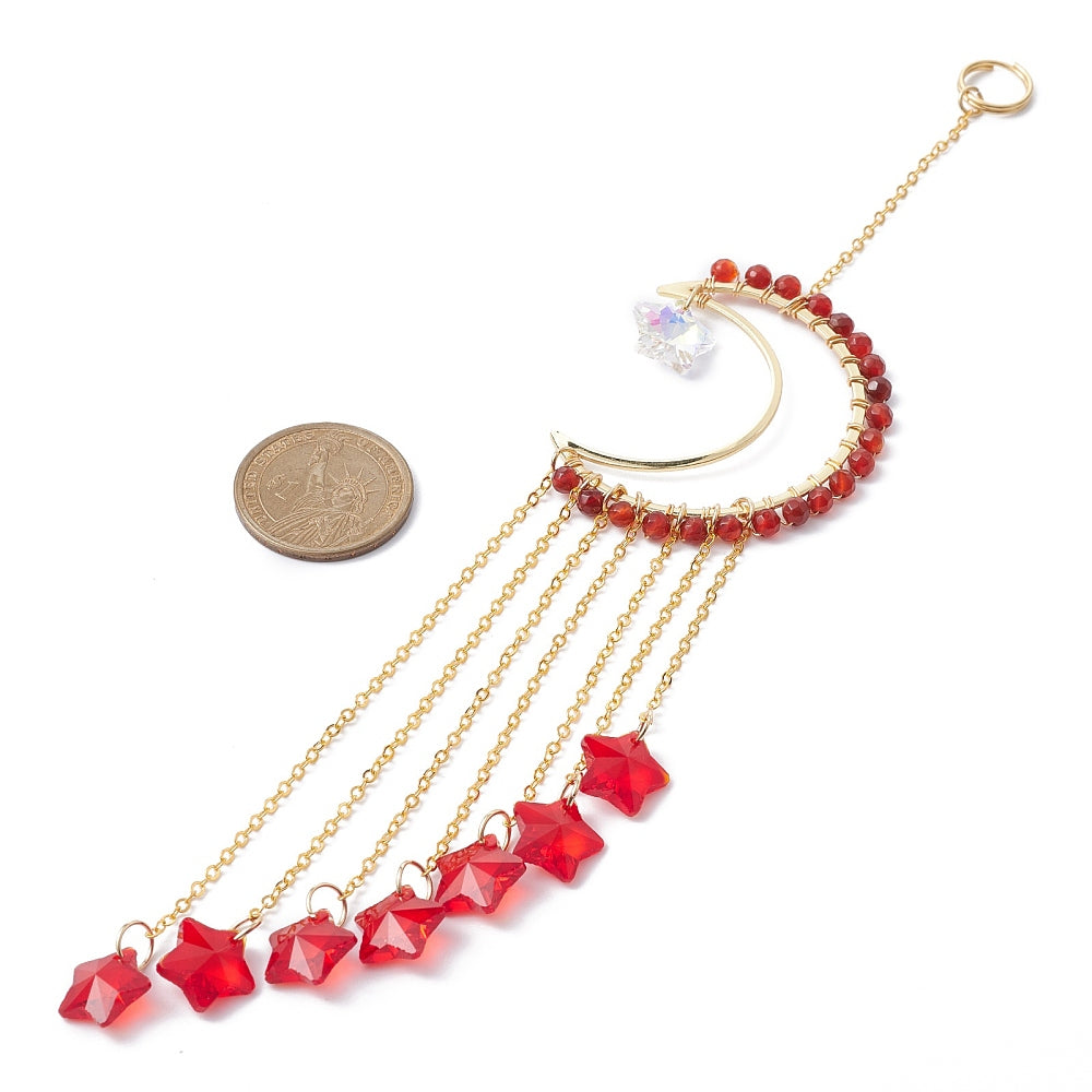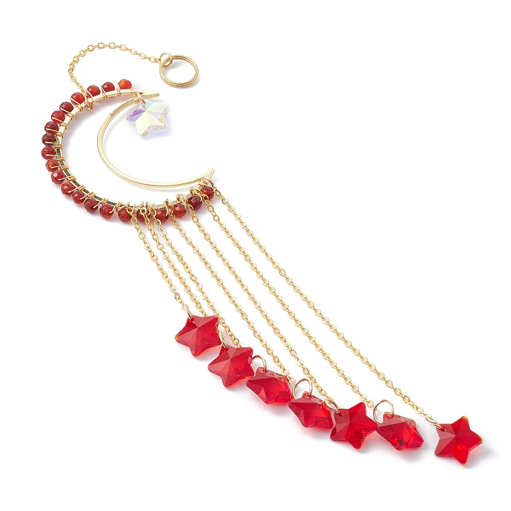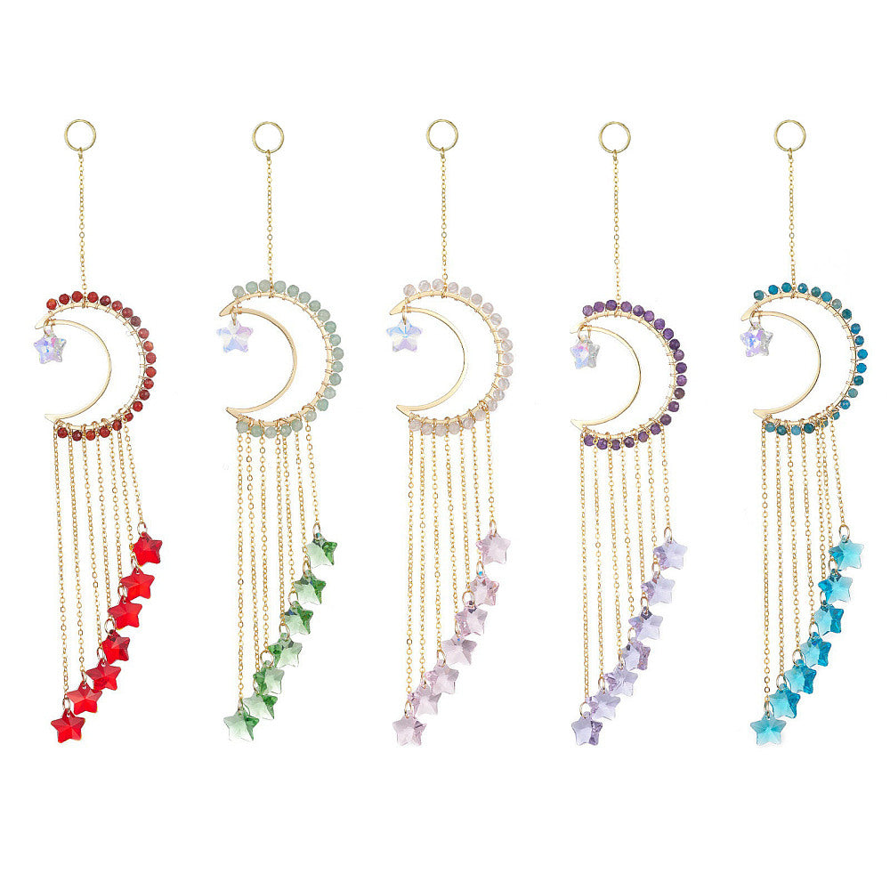 Ajoutez une touche de magie à votre espace avec ces décorations suspendues uniques. Fabriquées à la main avec des pierres naturelles, des perles de verre et des anneaux en acier inoxydable, ces attrapes soleil capturent la lumière et apportent une ambiance relaxante avec leur lune et leurs étoiles. La simplicité qui éblouit.
