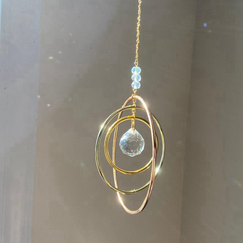 Découvrez notre attrape-soleil Univers qui apportera une touche de lumière à votre jardin ou votre maison Avec ses décorations pendantes en forme de larme de verre et d'anneau de fer, cet attrape-soleil suspendu en or mesure 300mm et ajoutera une touche de beauté à votre espace. Idéal pour une ambiance relaxante et élégante.