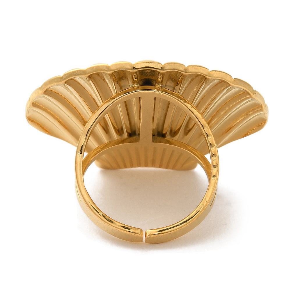 Bagues en acier inoxydable 304 avec placage ionique (IP), coquillage , véritable 18k plaqué or, diamètre intérieur : réglable