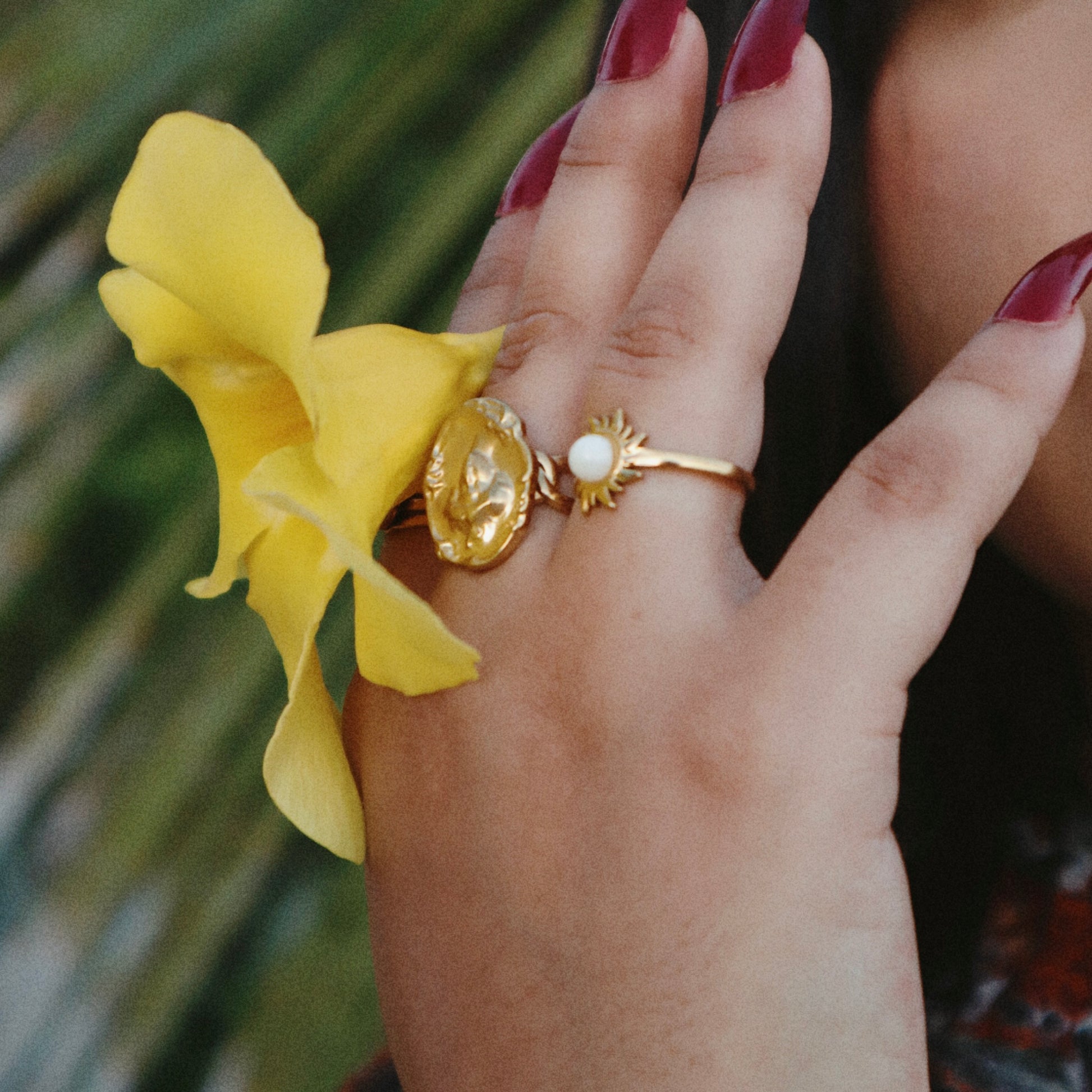 Bague forme soleil pierre mixte