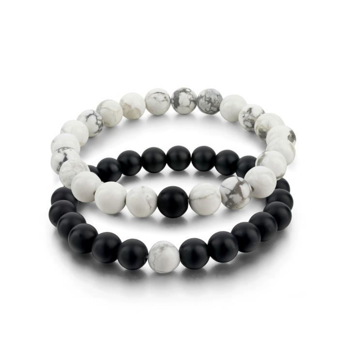 Lot de 2 bracelets homme en pierres naturelles montées sur fil élastique.
