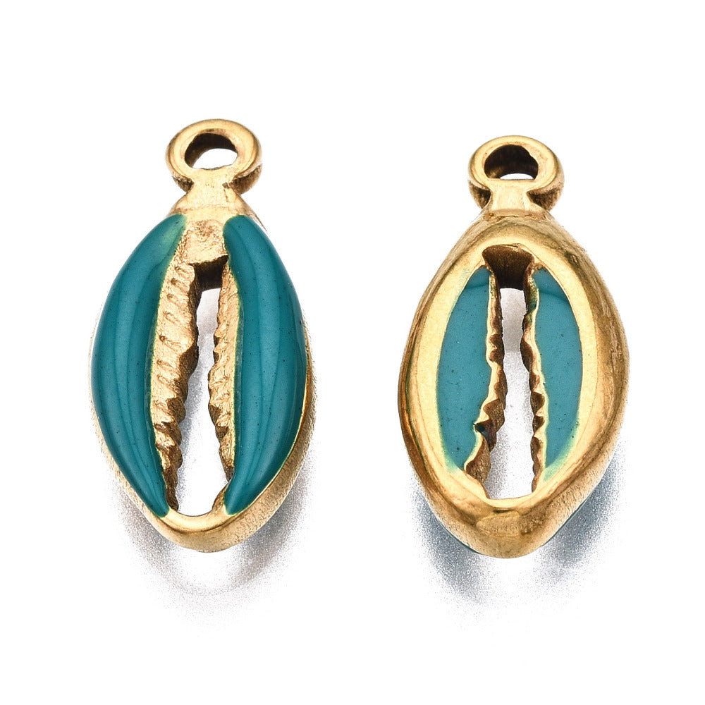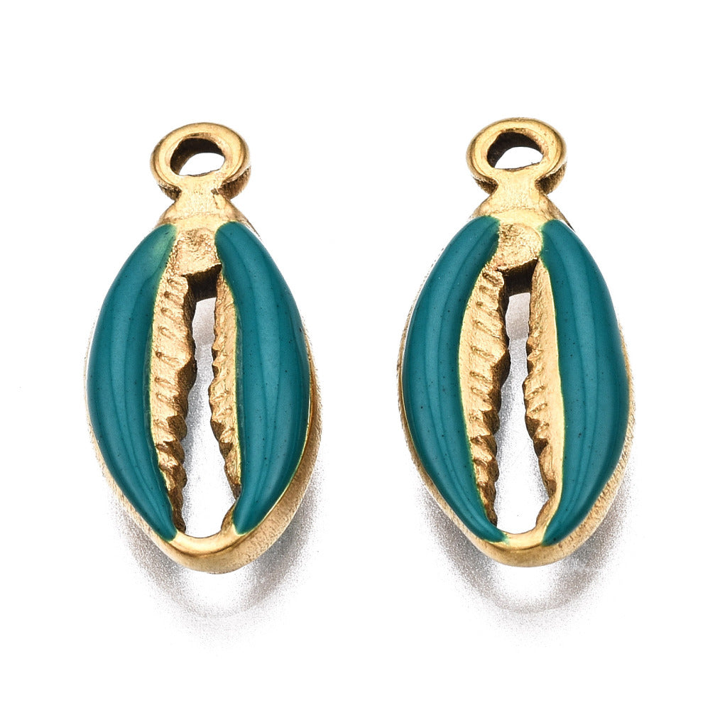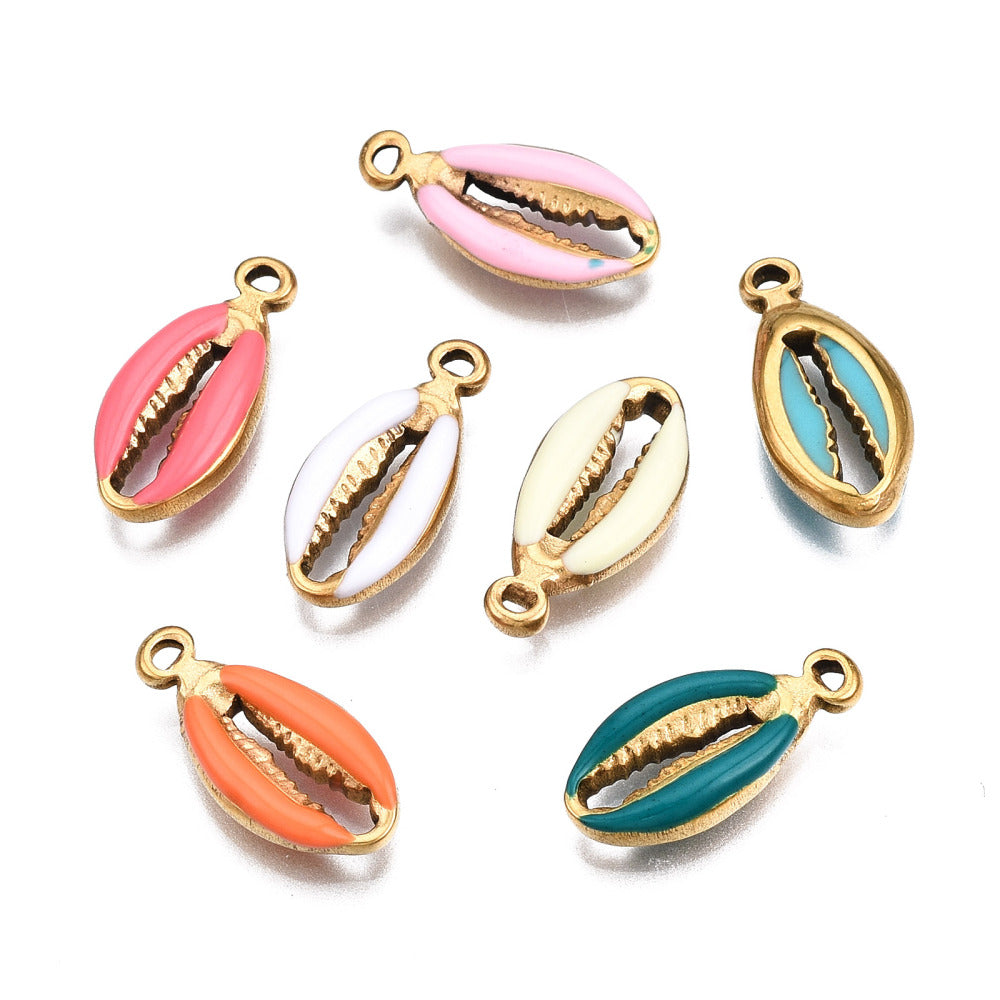 En acier inoxydable 304, avec l'émail, spirale coquille, or, couleur mixte, 17x8x3.5mm, Trou: 1mm