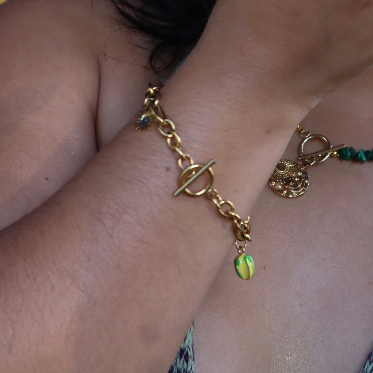 Bracelet en acier inoxydable avec des pendentifs breloques ultra tendance pour un style décontracté et élégant idéale pour l'été. Taille standard.