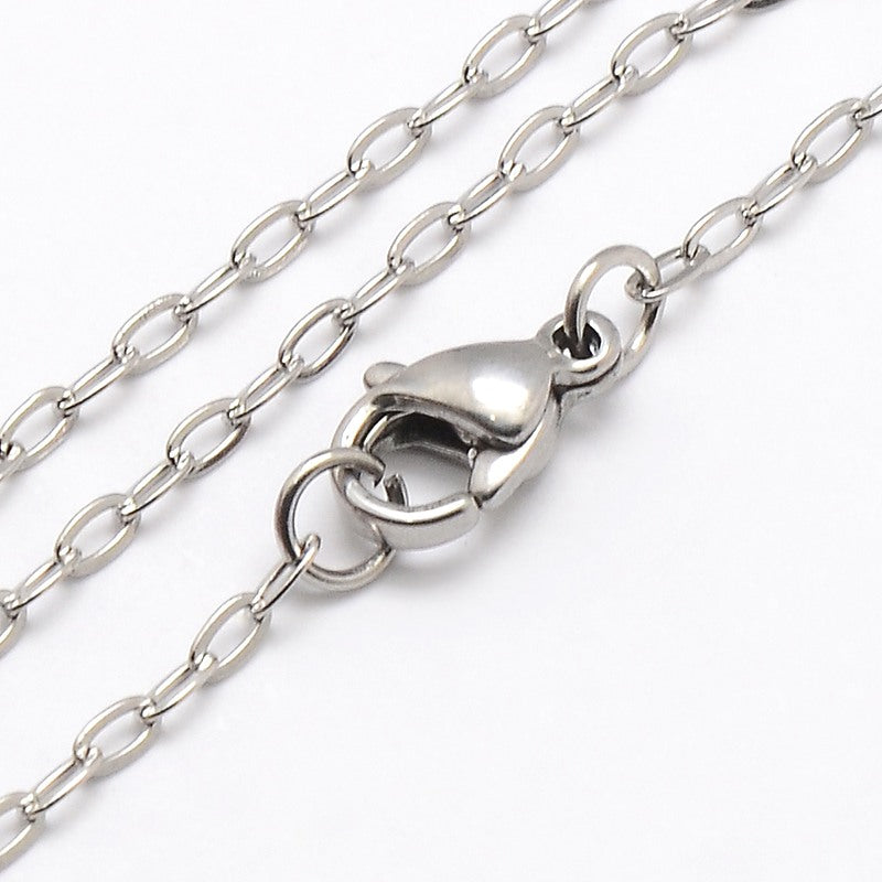 Chaine pour collier à maillons en acier inoxydable 304 émaillé, argent pour bijoux charm's breloque a choisir pour un bijou 100% personnalisé, avec fermoir pince de homard