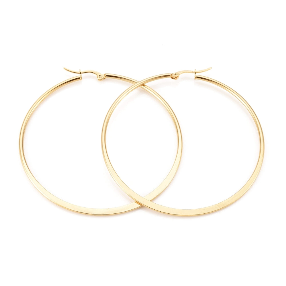 Découvrez notre grande créole en acier inoxydable 304 hypoallergénique. Avec sa forme de bague plate et son or éclatant, elle ajoutera une touche classique et sophistiquée à toutes vos tenues. Mesurant 78 mm de diamètre, elle est la taille parfaite pour sublimer votre look avec élégance et confort.