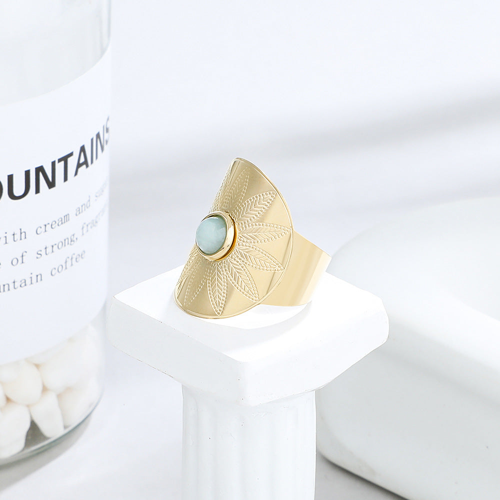 Bague acier or vintage très belle finition, épaisse avec pierre naturelle