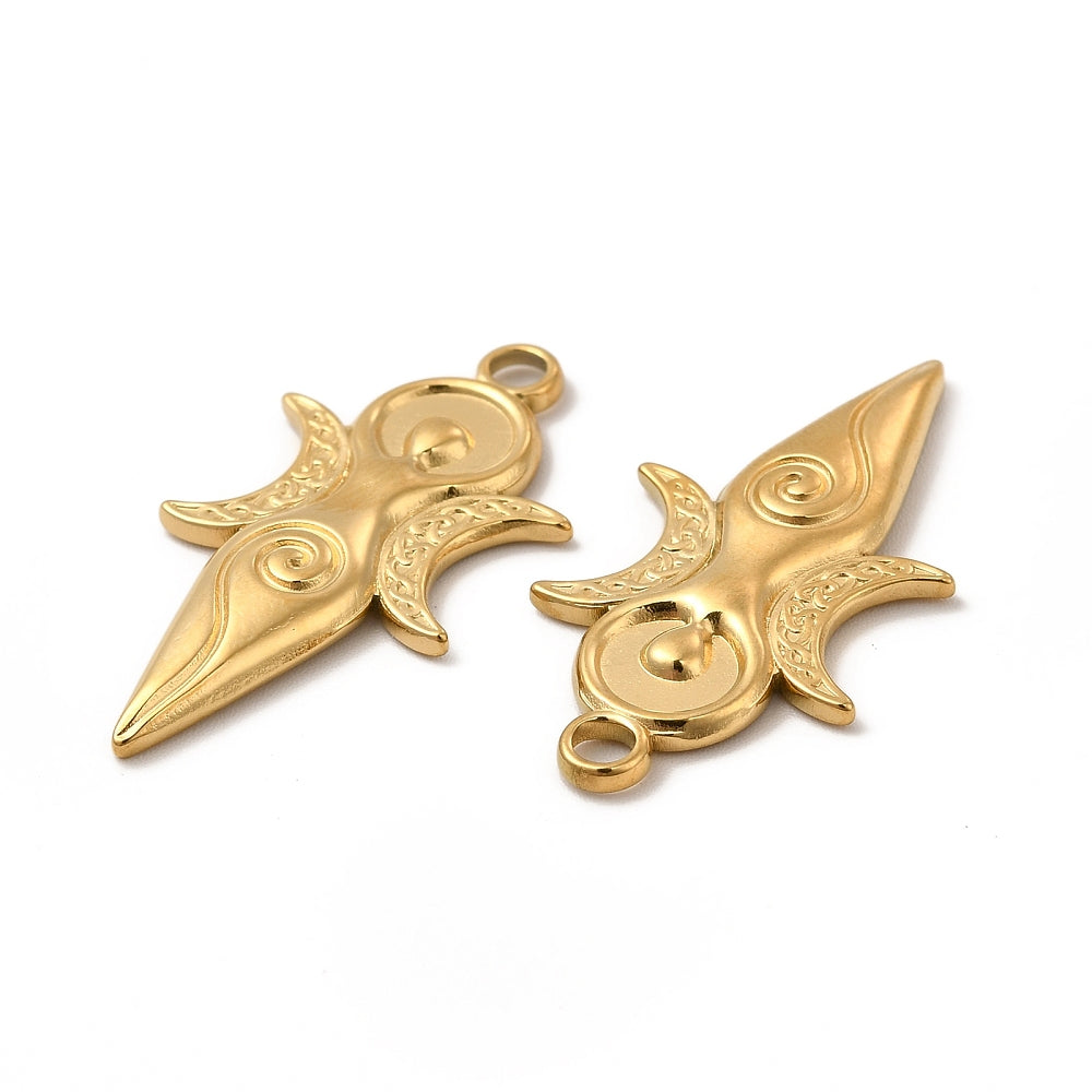 Pendentifs en acier inoxydable symbole de la déesse de la lune, pour invoquer la puissance de l'astre lunaire, fertilité, feminité et cycle de changement.